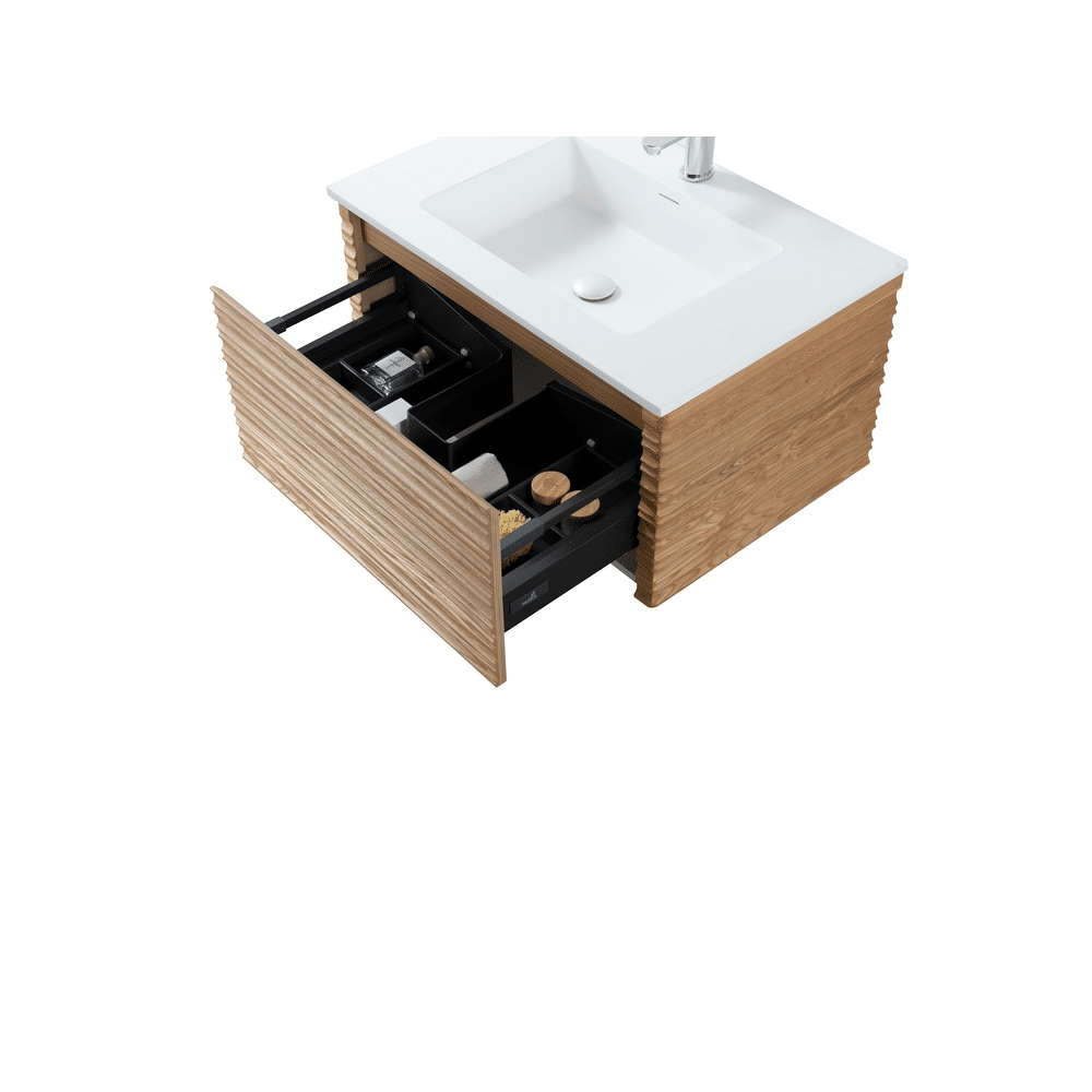 Kamellia Wastafelonderkast - 1 Lade - Greeploos - Soft Close - 79x40x52 Cm - Licht Walnoten