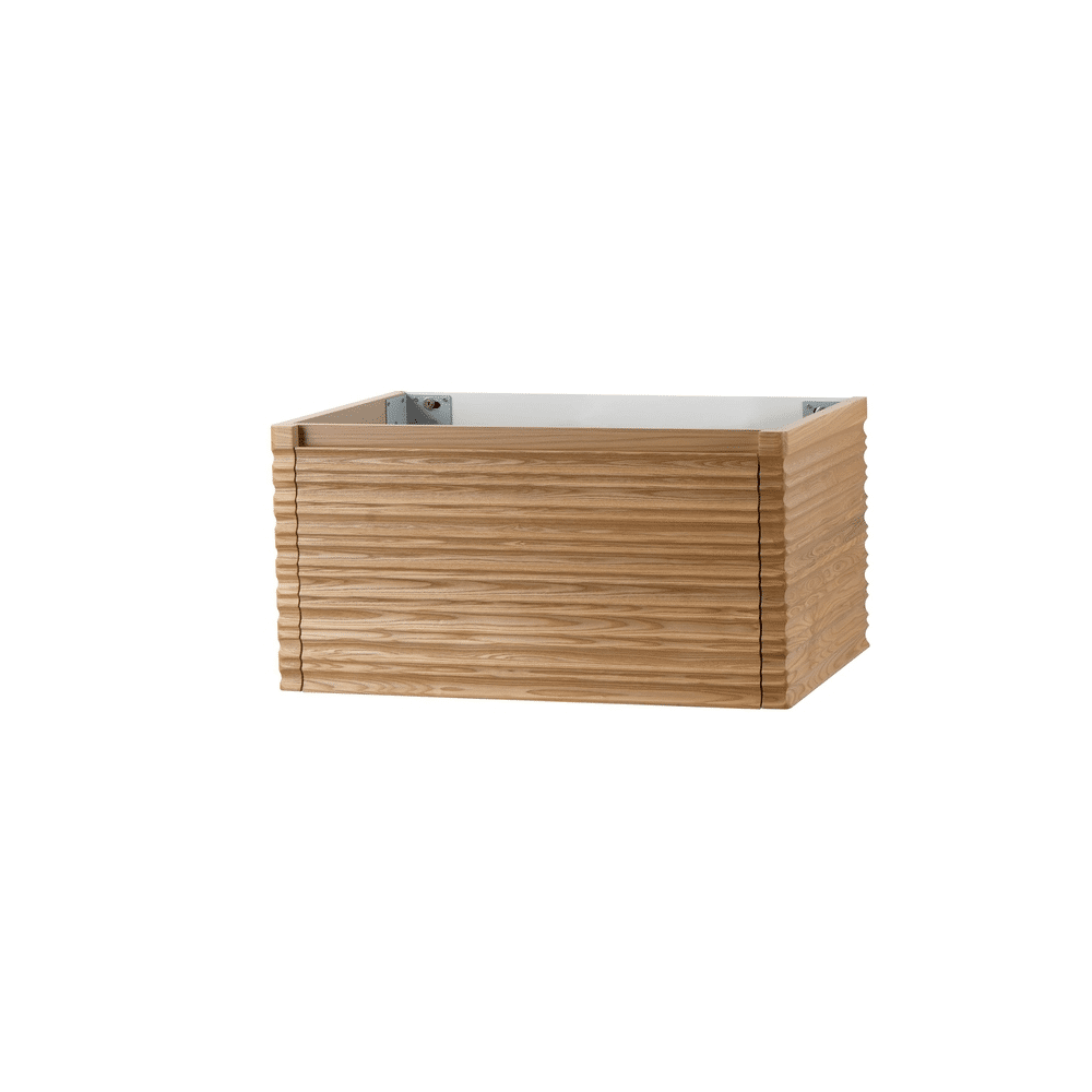 De Kamellia wastafelonderkast in licht walnoten combineert stijl en gebruiksgemak. Jij profiteert van één greeploze lade met soft close, waardoor alles geruisloos sluit en jouw badkamer netjes blijft. Het lichte walnotenhout geeft een warme, natuurlijke uitstraling.