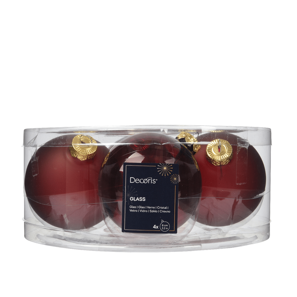 - Product: Kerstballen Glas Mix Unsilvered Shiny - Matt Dia8.00Cm Ossenbloed
