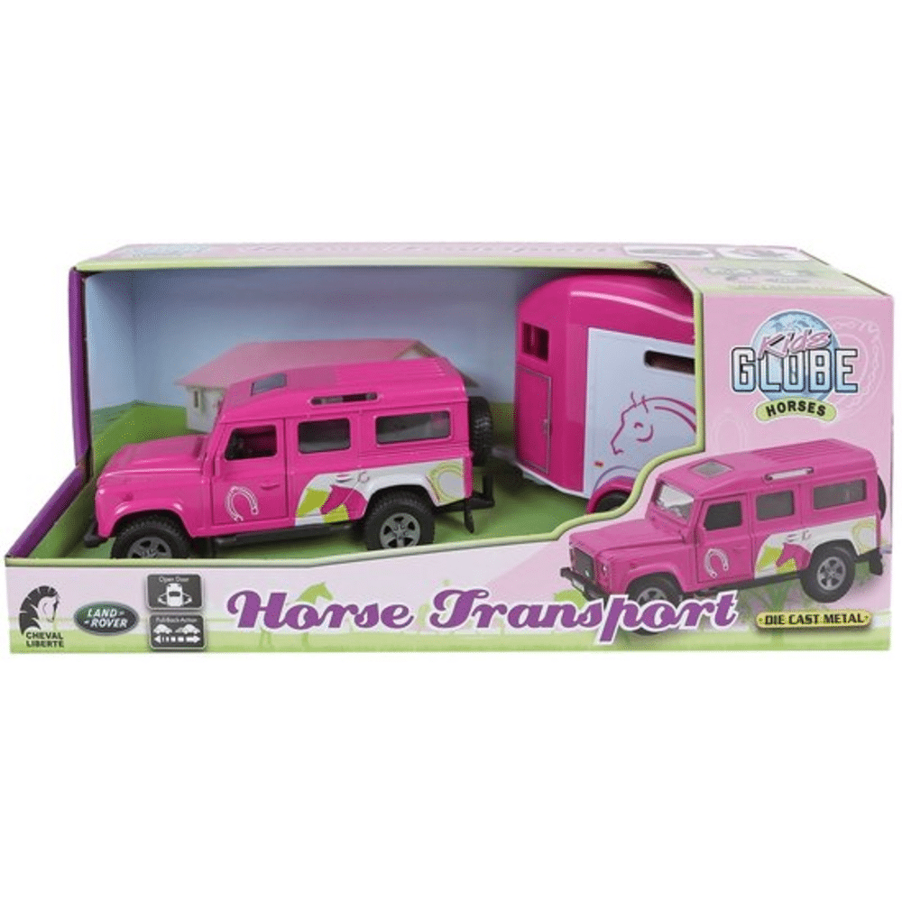 - Product: Kids Globe Land Rover Met Cheval Liberte Paardentrailer Die Cast Pull Back Roze 26cm