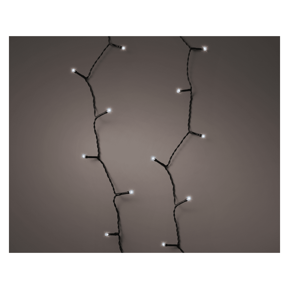 Het heeft 8 verlichtingsstanden, waarvan er één vast is. Uniek is het systeem van Durawise: met één druk op de knop brandt je slinger 6 uur per dag automatisch 30 dagen lang met slechts één set batterijen! Het meet 17,90 m. LED-kleur: koel wit. Binnen en buiten gebruik.