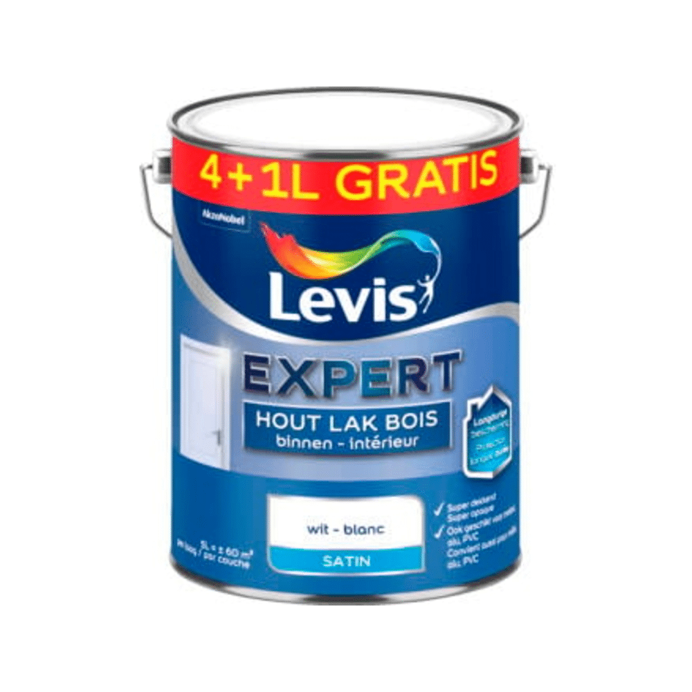 - Product: Levis Expert Hout Lak Binnen Satin Wit 4+1l