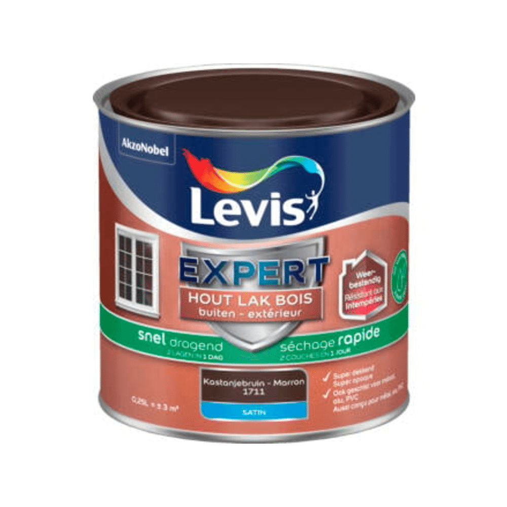 - Product: Levis Expert Houtlak Buiten Satin Sneldrogend Kastanje 0,25l