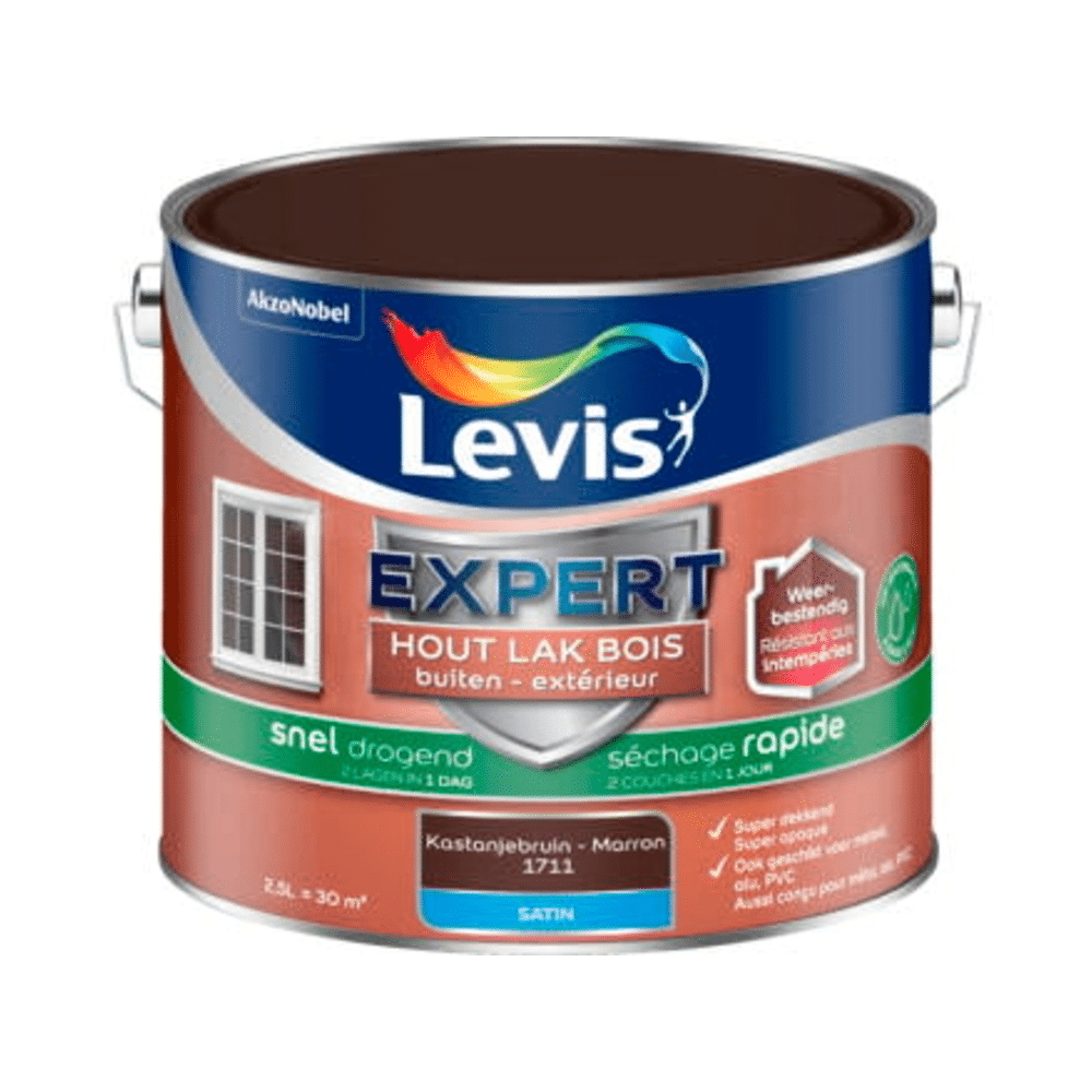 - Product: Levis Expert Houtlak Buiten Satin Sneldrogend Kastanje 2,5l