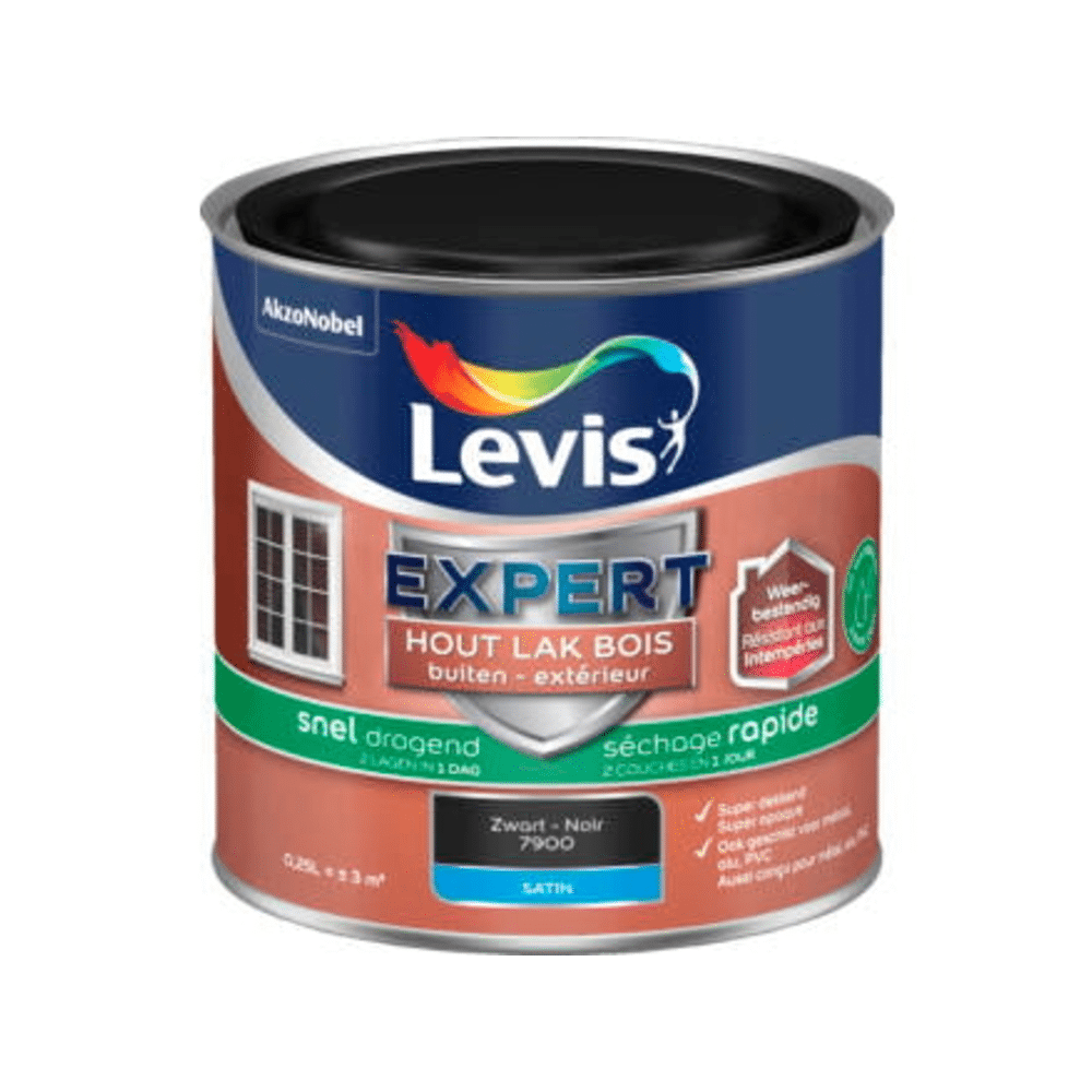 - Product: Levis Expert Houtlak Buiten Satin Sneldrogend Zwart 0,25l