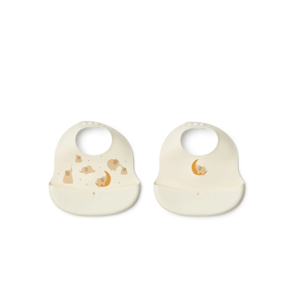 Maak maaltijdmomenten leuk en zorgeloos met de Liewood Ember slabben. Het Artic Elephant design in Creme De La Creme geeft een zachte, stijlvolle touch, terwijl de slabben kleding beschermen en comfortabel zitten.