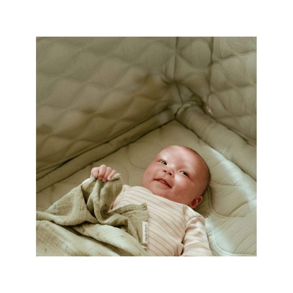 De Little Dutch Boxbumper Pure Sage combineert veiligheid, comfort en stijl.Een zachte en praktische bescherming voor je kindje in de box.