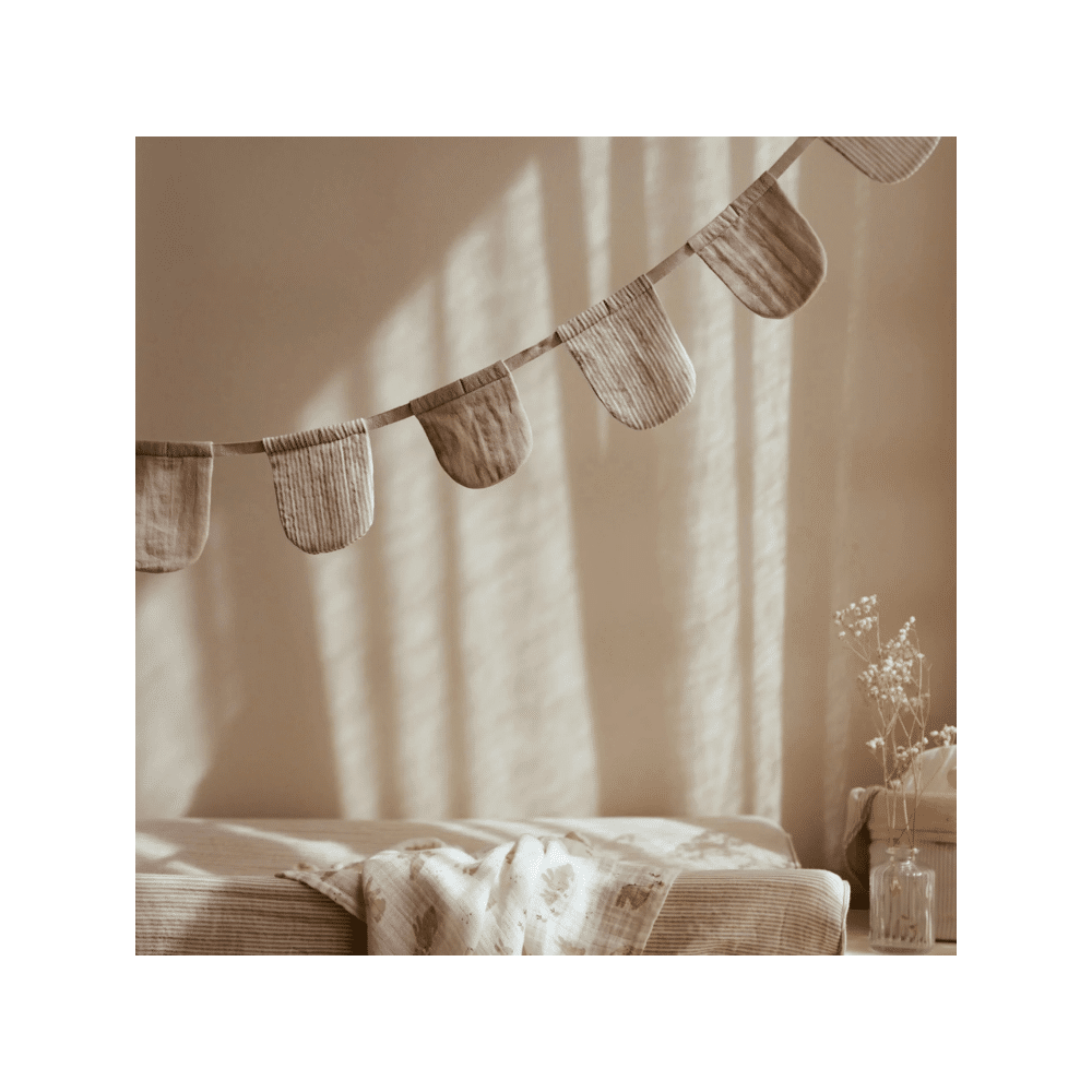 Geef de kinderkamer of speelruimte een warme en zachte touch met deze slinger.Een set elegante vlaggetjes in Pure Soft Beige, ideaal voor elke gelegenheid.