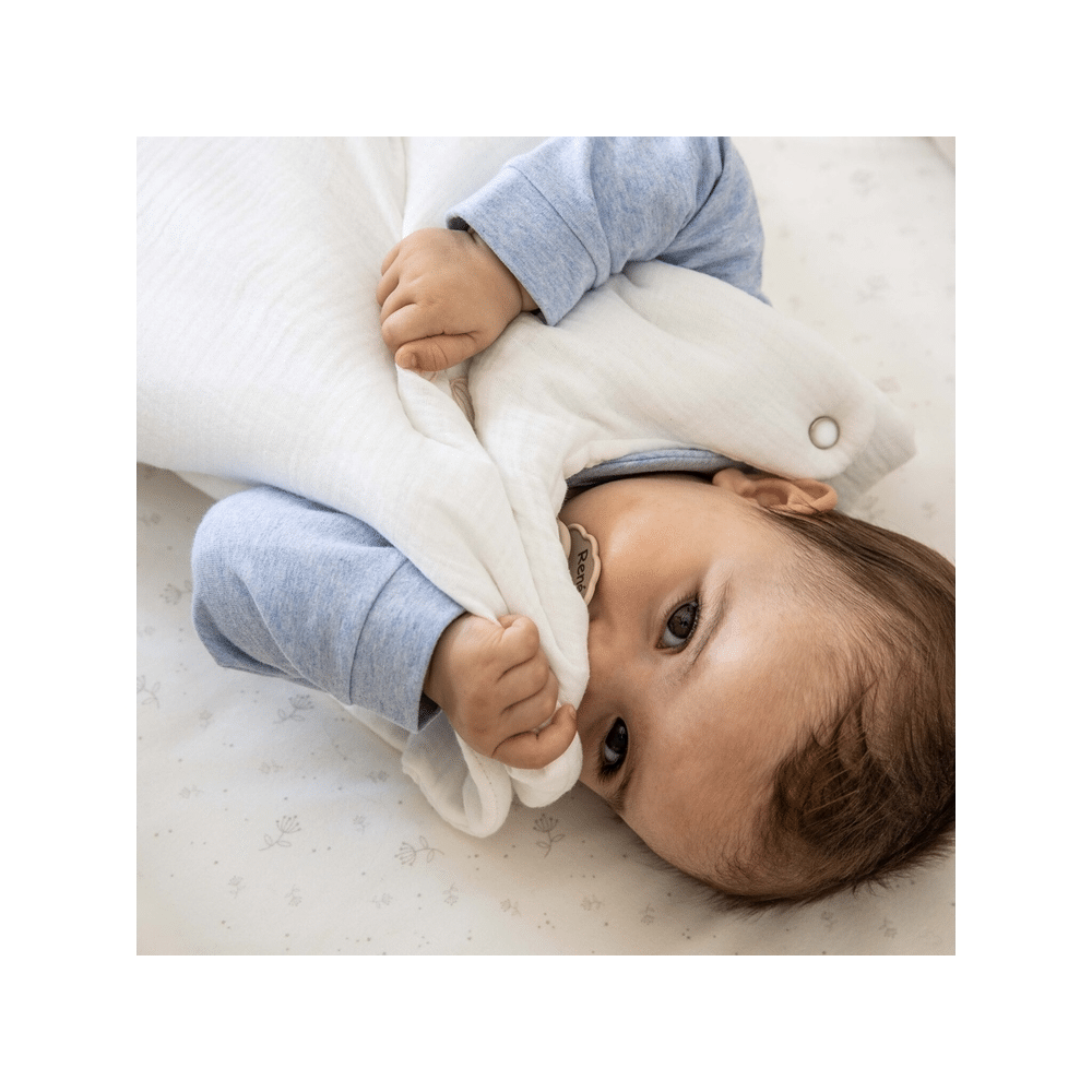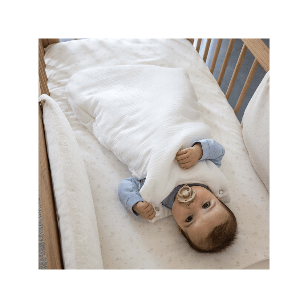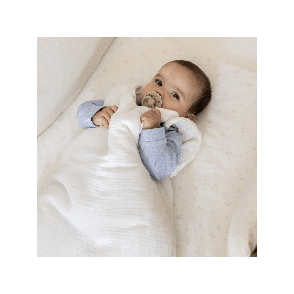 Met een lengte van 70 cm is deze slaapzak ideaal voor pasgeborenen en jonge baby's. Het tijdloze witte ontwerp past in elke kamer en de tetra-structuur geeft een luxueuze, zachte uitstraling. Duurzaam, ademend en lichtgewicht, perfect voor een comfortabele nachtrust.