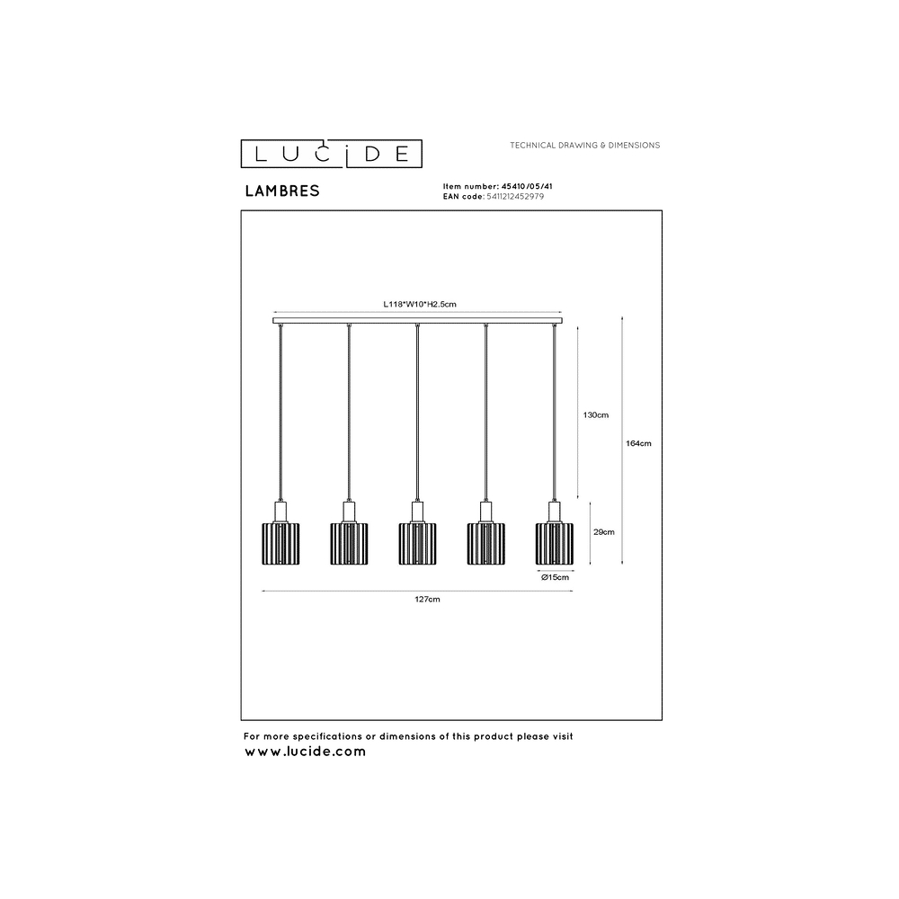 - Verbruik: 5x40W / 230V / dimbaar