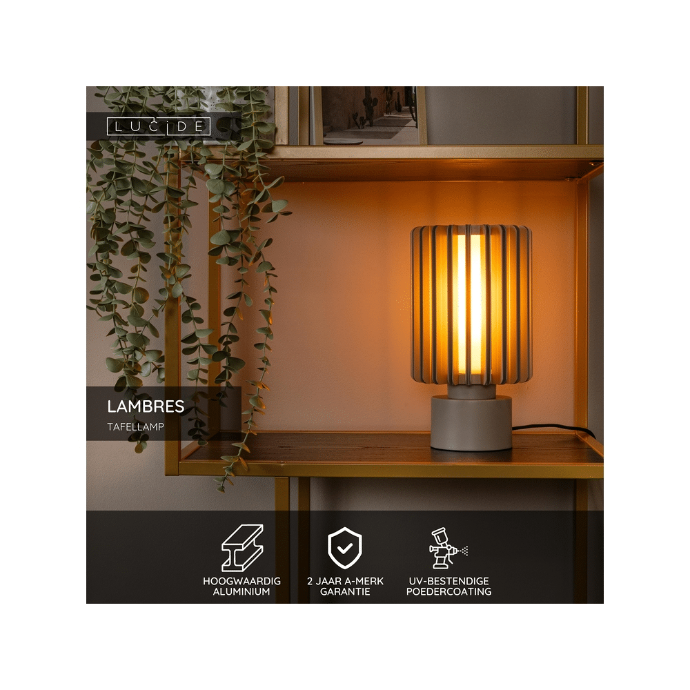 - Product: Lucide Lambres - Tafellamp - Ø 15 Cm - 1xe27 - Taupe
