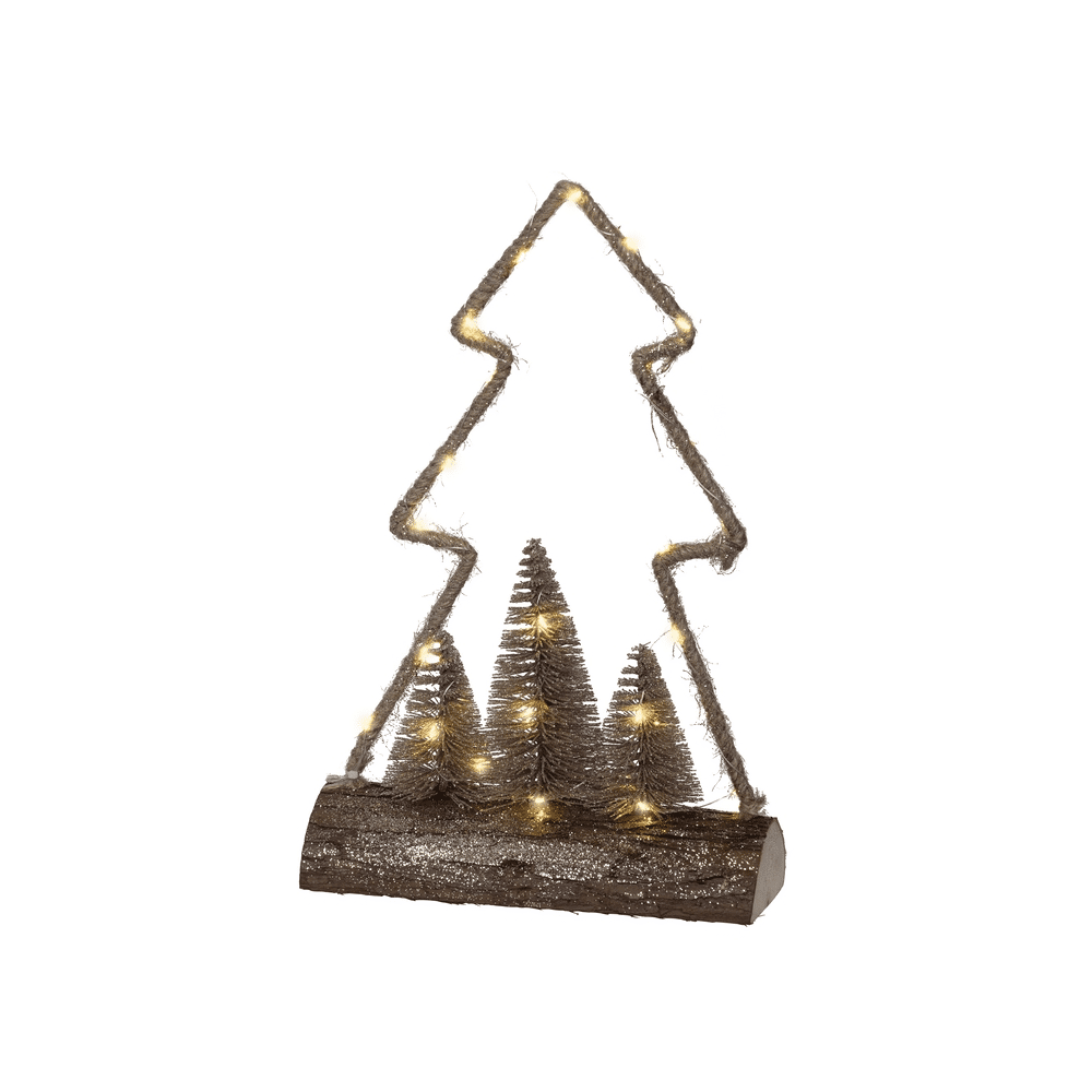 Een knusse kerstsfeer in huis? Deze rustieke kerstboom van jute met een sprookjesachtig boslandschap binnenin zorgt meteen voor die gezellige wintervibes. De warmwitte micro LED-lichtjes brengen het tafereeltje op magische wijze tot leven. Zet 'm op een kast, in de hal of op je feesttafel en laat de kerstkriebels maar komen!Een lichtje in de donkere dagen