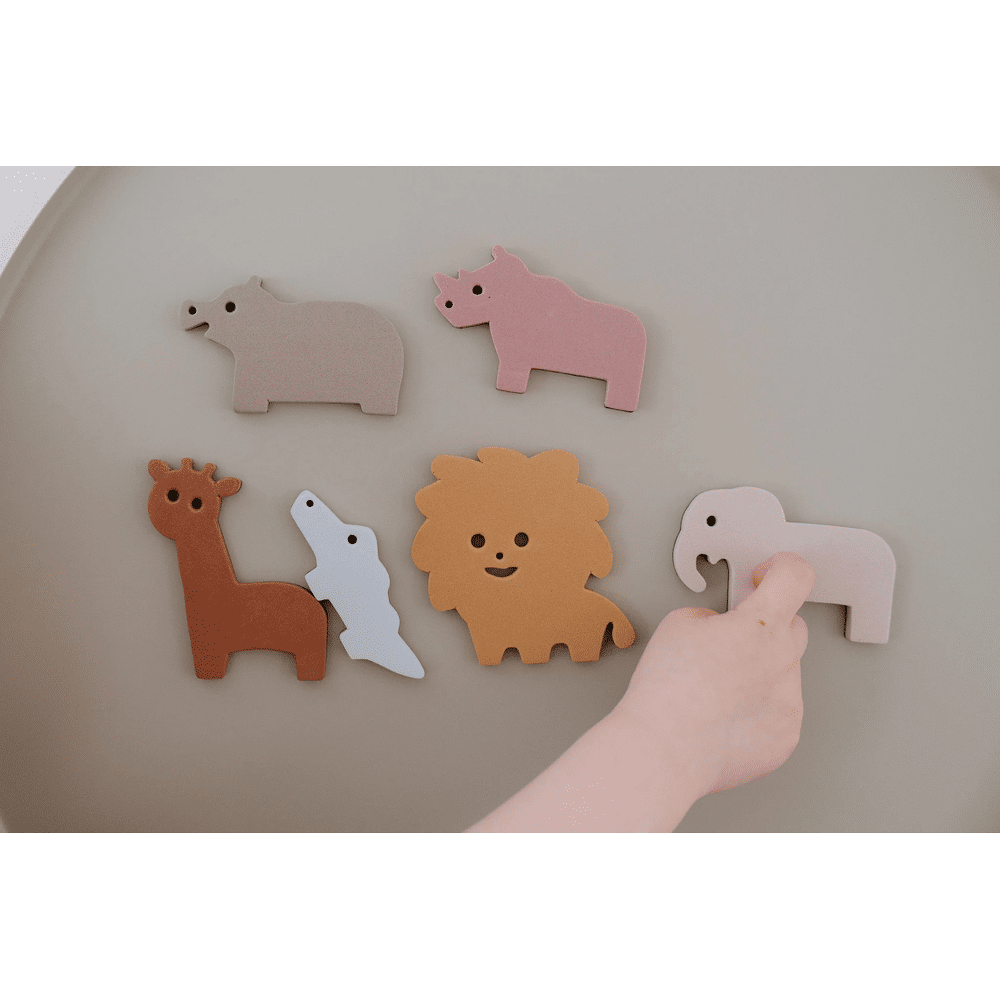De set bestaat uit 6 verschillende safaridieren die speciaal ontworpen zijn voor kleine handjes. Het lichte foam voelt zacht aan en is veilig in gebruik. Kinderen verzinnen hun eigen verhalen en oefenen ondertussen spelenderwijs hun motoriek en creativiteit.