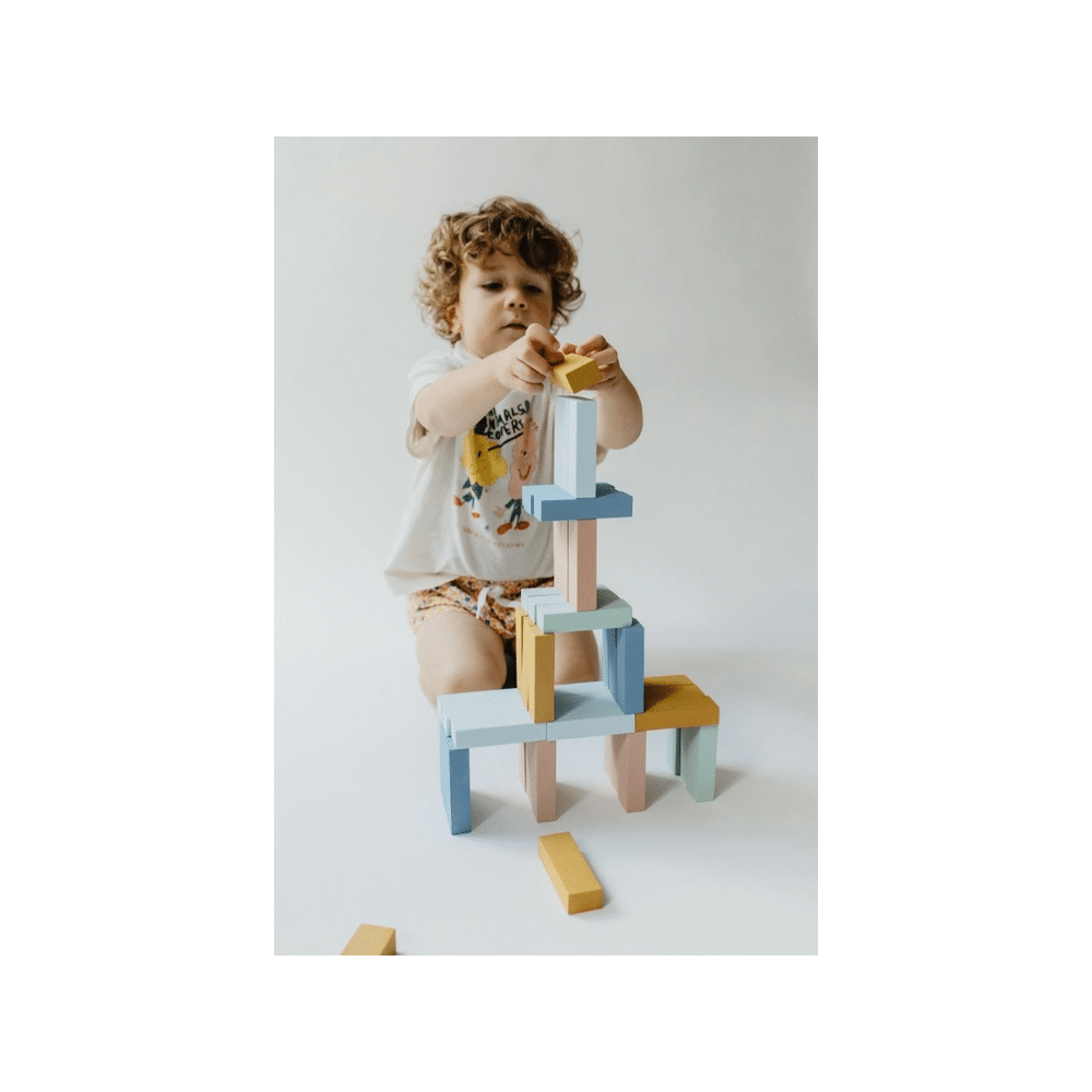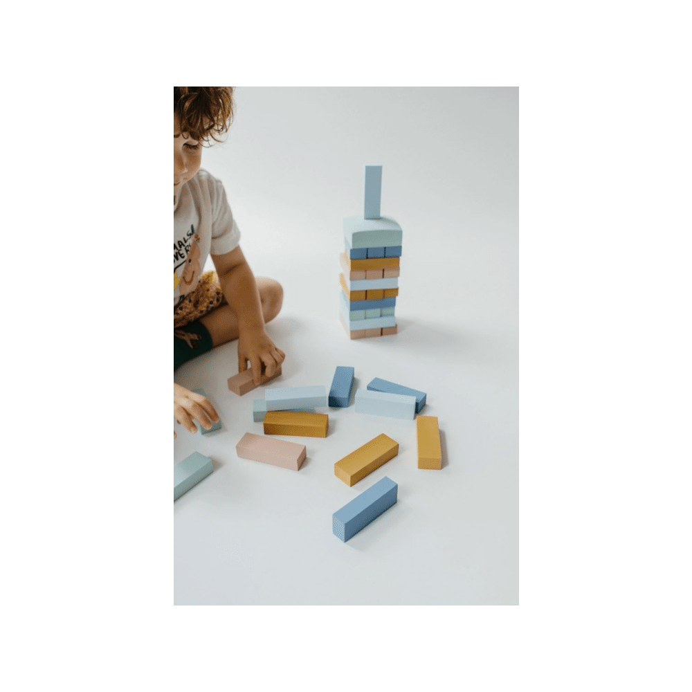 Met 42 kleurrijke blokken en een wiebelende basis biedt deze set eindeloze mogelijkheden bij het bouwen van torens, bruggen en allerlei constructies. De wiebelende bodem voegt een extra element van spanning toe, hierdoor kunnen de bouwers hun evenwichtsvaardigheden ontwikkelen terwijl ze hun meesterwerken bouwen. Deze set is niet alleen een bron van urenlang speelplezier, maar ook een krachtige tool om de cognitieve en motorische vaardigheden van kinderen te bevorderen. Laat de creativiteit los met de Tower Blocks set!