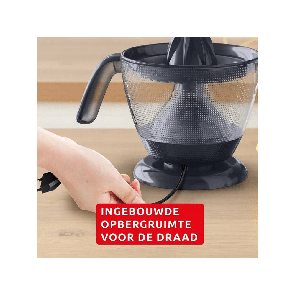 Dankzij de elektrische bediening pers je moeiteloos citrusvruchten zonder kracht te zetten. Zo haal je snel het maximum uit elke vrucht.