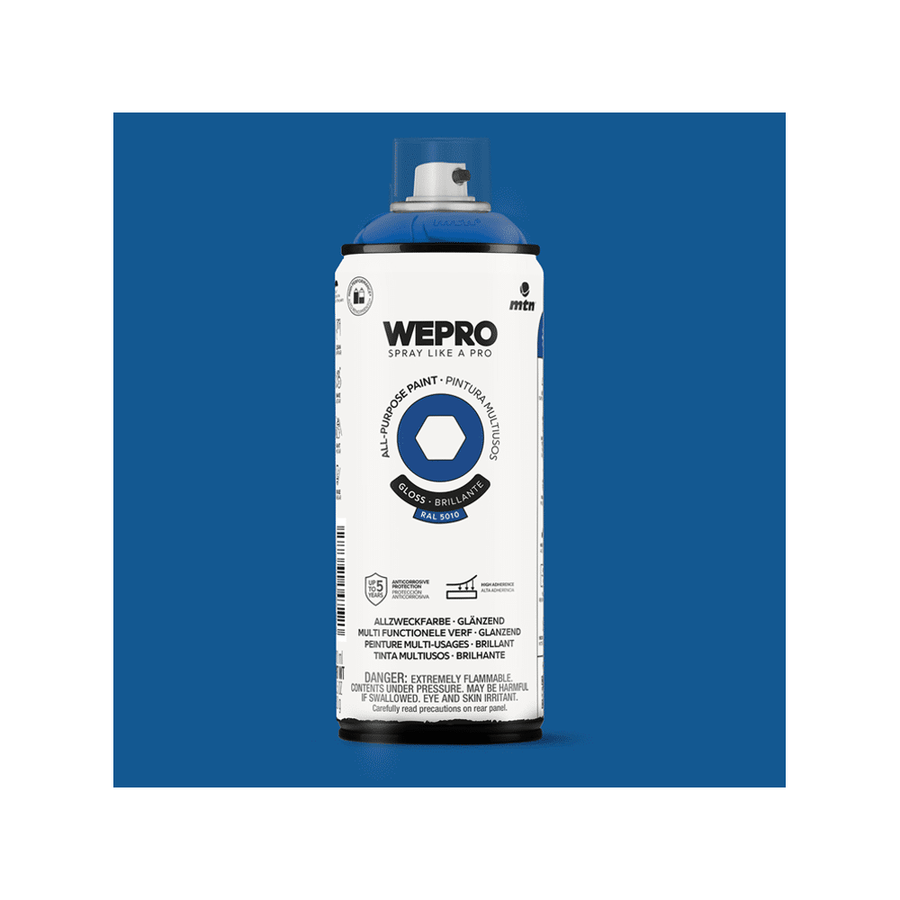Ontdek de Mtn Wepro Solvent Klein Blue 400ml spuitbus voor een diepe, levendige blauw kleur. Deze blauwe spray paint geeft je projecten een frisse en professionele look. Ideaal voor street art, kunstwerken of verfdetails op uiteenlopende ondergronden. De bus ligt comfortabel in de hand en levert een consistente kleurafgifte voor vloeiende lagen zonder vlekken.