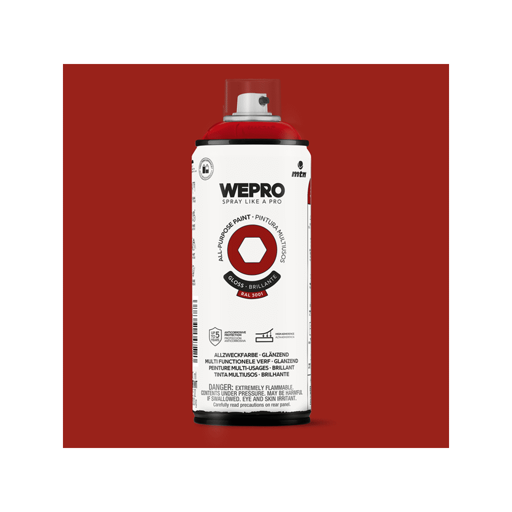De Mtn Wepro Solvent Moscow Red 400ml combineert hoge kwaliteit met een sterke kleurkracht. Dankzij de solvent basis dekt deze verf uitstekend en droogt ze snel zodat je sneller verder kan met je werk.