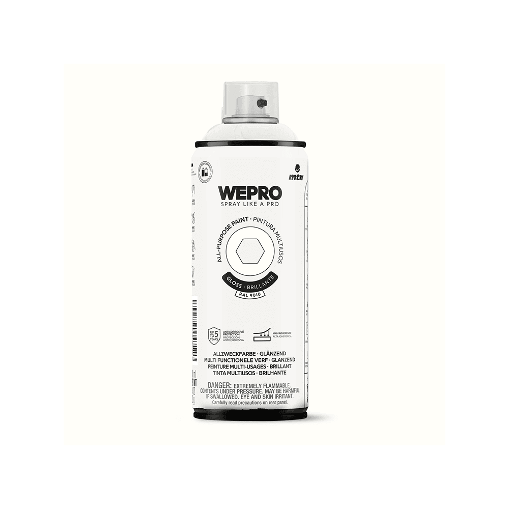 De Mtn Wepro Solvent Stellar White Gloss 400ml spray is jouw betrouwbare keuze voor een glanzende, heldere witte tint met professionele kwaliteit en een soepele spuitervaring voor al je creatieve projecten.