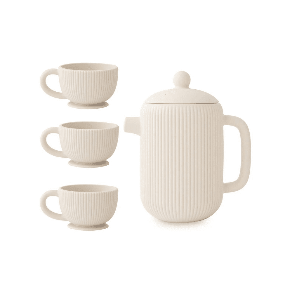 Mushie Silicone Thee Speelset Shifting Sand is veilig, duurzaam en creatief. Perfect voor fantasierijk theespel en uren speelplezier voor kleintjes!