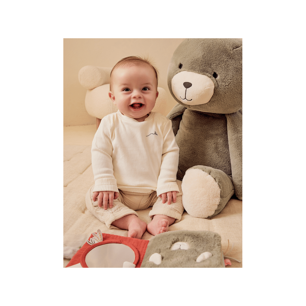 • Een knuffel die meegroeit met je kindje – van eerste troost tot speelse ontdekking.