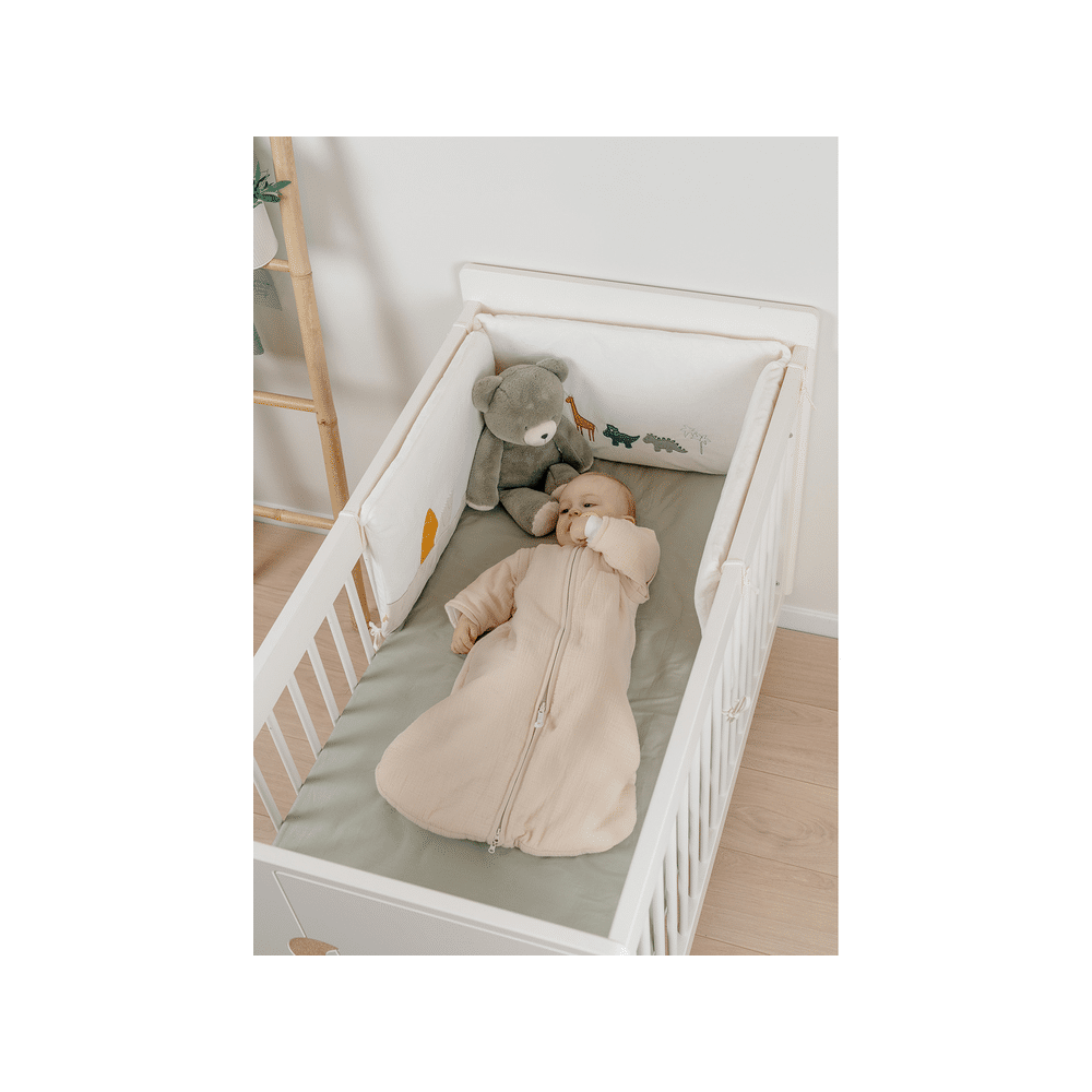 De Noukies M&m26 slaapzak 70 cm met afneembare mouwen in beige biedt jouw baby een veilige en comfortabele slaap vanaf de eerste maanden.