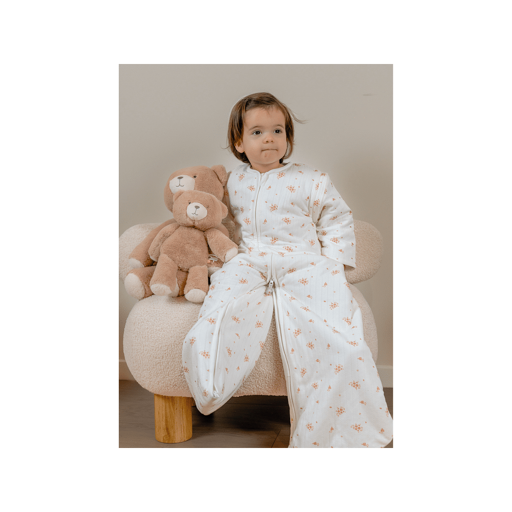 Deze slaapzak met afneembare mouwen geeft je de vrijheid om de warmte aan te passen aan elk seizoen. Ideaal voor een veilige en rustige slaapomgeving.