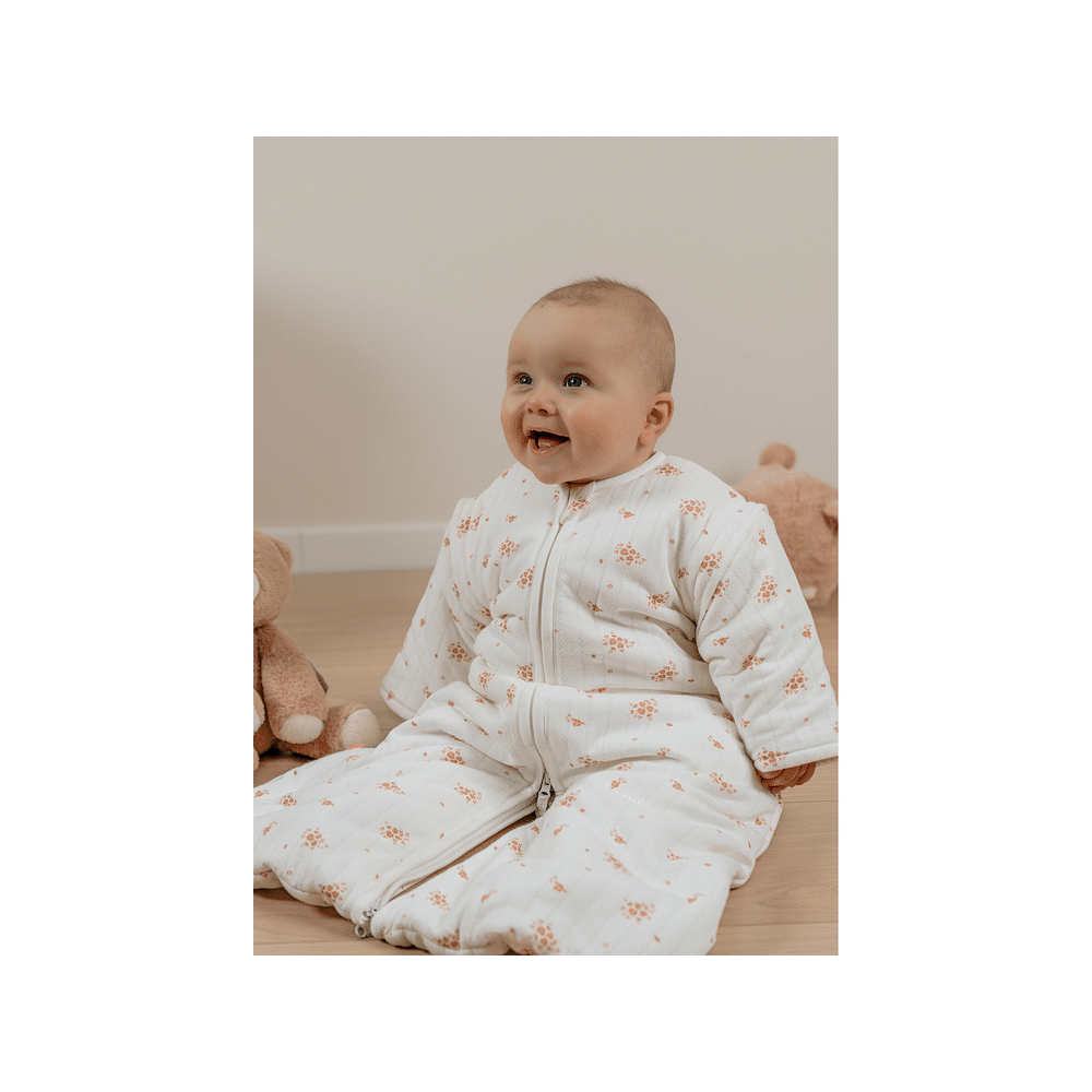 Deze slaapzak is uitgerust met afneembare mouwen, waardoor je eenvoudig aanpast aan de temperatuur. Ideaal voor wisselende seizoenen en perfect om je kindje comfortabel te houden zonder oververhitting.