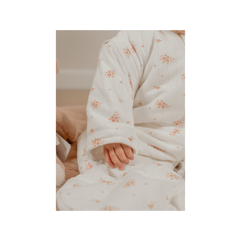 De Noukies Vintage Flowers slaapzak van 70 cm met afneembare mouwen biedt je baby een veilig en geborgen gevoel tijdens elke slaap. De zachte stof en verfijnde bloemenprint zorgen voor rust, warmte en een stijlvolle touch in de babykamer.