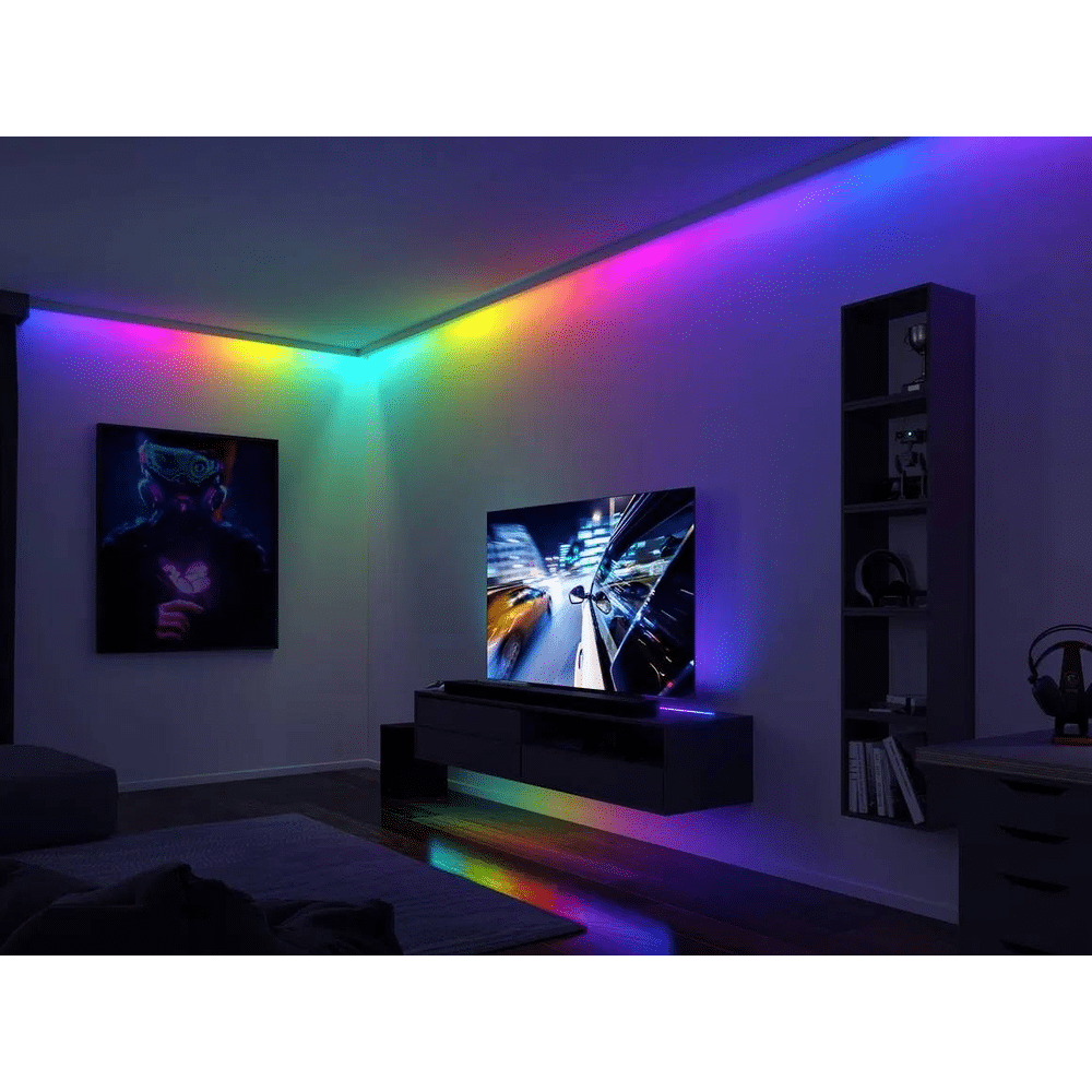 Breng kleur en sfeer in elke ruimte met de Paulmann LED Strip Set Dynamic Rainbow! Deze 1,5 meter lange LED-strip laat je kiezen uit een volledig RGB-spectrum, zodat je telkens de perfecte kleur en sfeer kan creëren. Het krachtige, energiezuinige licht van 4,8W zorgt voor een heldere en levendige verlichting, terwijl de zwarte metalen behuizing een stijlvolle en moderne touch geeft aan jouw interieur.