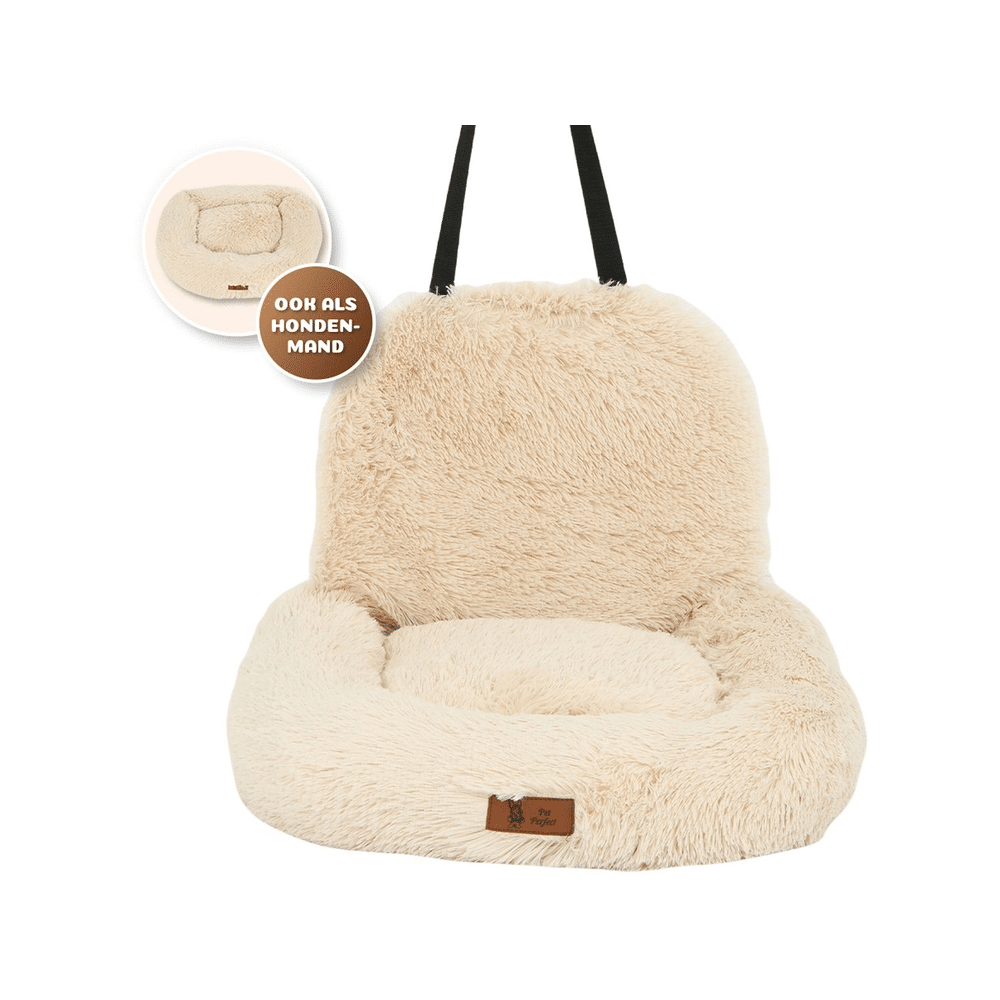 Deze beige Fluffy autostoel voor honden in maat S zorgt dat jouw kleine hond veilig en comfortabel meereist in de auto. Het zachte, luxe materiaal geeft je hond een warme en geborgen zitplaats. Dankzij het afneembare en wasbare ontwerp houd jij de stoel eenvoudig schoon en netjes. Perfect voor kleine hondenrassen zoals Chihuahua en Franse bulldog.