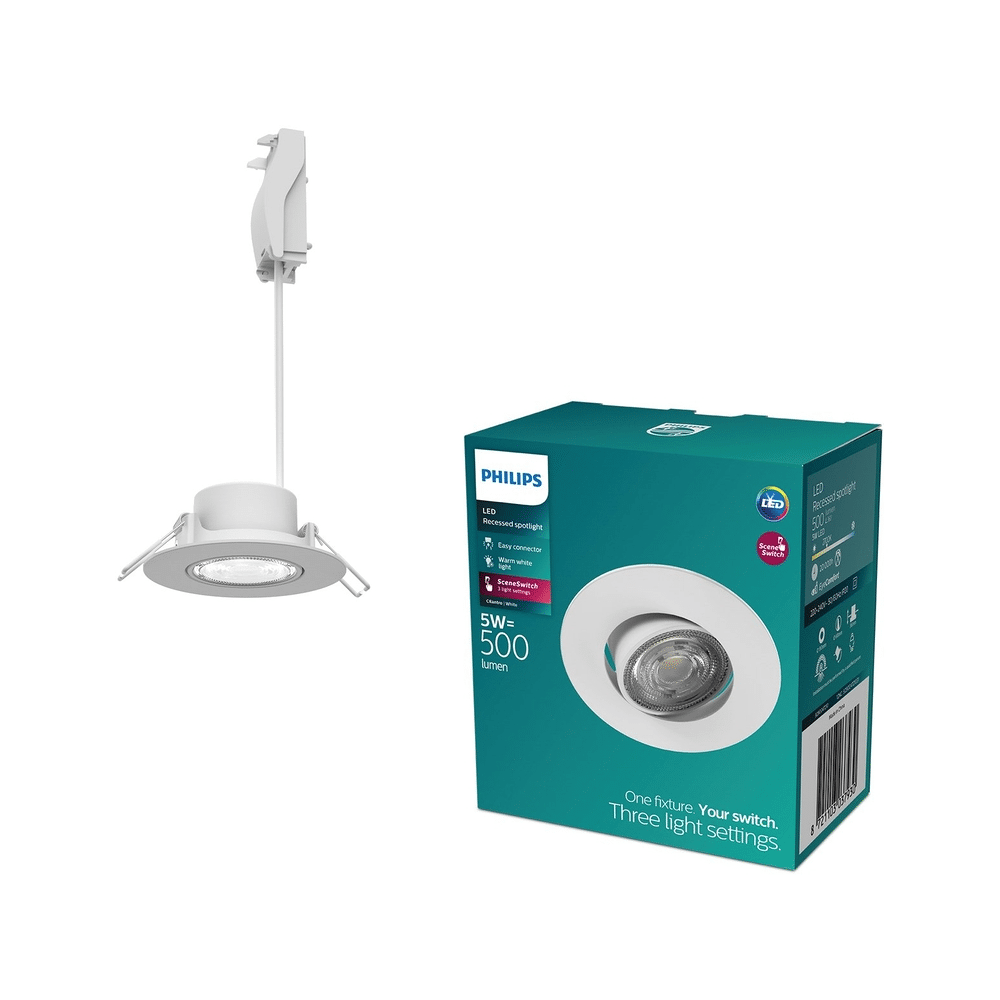 De Philips Cilantro inbouwspot combineert eenvoudige installatie, warm licht en handige dimniveaus. Dankzij de witte afwerking, draaibare spot en lange levensduur biedt deze spot een duurzame en moderne lichtoplossing voor elke woonruimte.