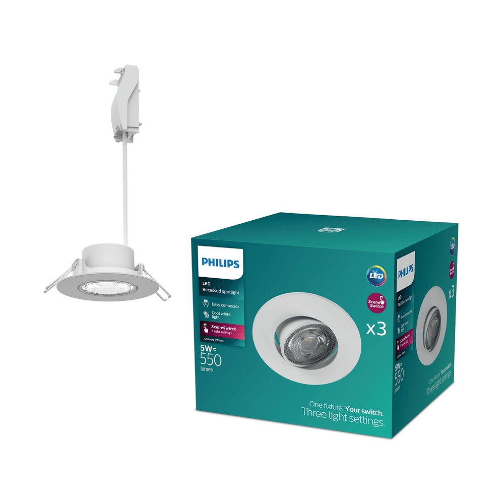 De Philips Cilantro inbouwspot combineert een strak wit design met handige lichtfuncties. Dankzij de connectorbox plaats je de spot zonder gereedschap, waarna je meteen geniet van helder, kwalitatief licht in een frisse 4000K-kleur. Via je bestaande lichtschakelaar schakel je eenvoudig tussen drie dimniveaus, zonder extra dimmer of installatie.