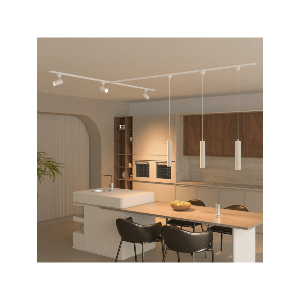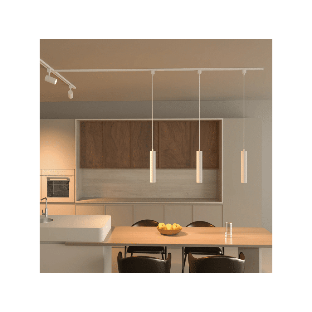 Het slanke ontwerp past prachtig in elk interieur en de lamp wordt geleverd met een lang snoer waarmee je de hoogte eenvoudig kunt instellen. Voeg moeiteloos lampen toe of verwijder ze, zonder extra bedrading of vervanging van de rails. De geïntegreerde aardedraad zorgt voor veilige installatie op elke compatibele 3-draads H-type railverlichting.