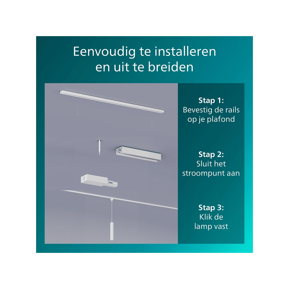 Creëer een stijlvolle en flexibele verlichtingsoplossing met de Philips Easylink Paxie hanglamp. Deze lamp is ontworpen voor eenvoudige installatie en biedt eindeloze uitbreidingsmogelijkheden zodat je verlichting helemaal naar wens kunt aanpassen.