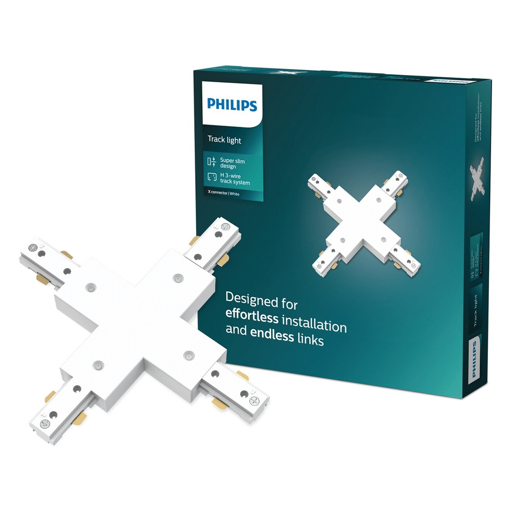 De X-connector is zowel functioneel als stijlvol en geeft je de mogelijkheid om complexe railpatronen te creëren. Combineer met verschillende Philips Easylink rails en lampen voor een persoonlijke en veelzijdige lichtopstelling die perfect past bij elke kamer.