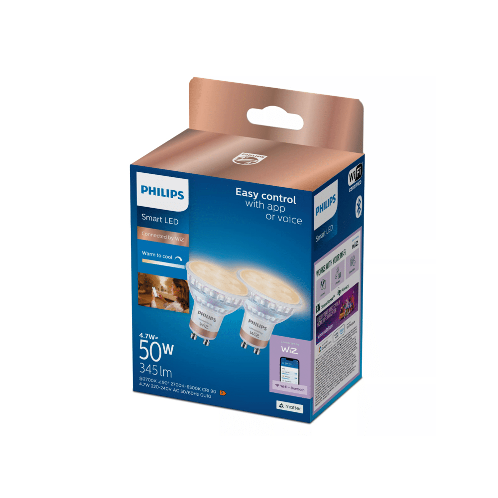 - Product: Philips Wiz Smart Lamp 50w Gu10 Glass 927-65 Instelbaar Wit 2-Pack