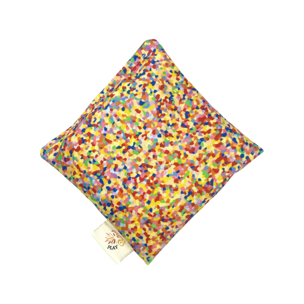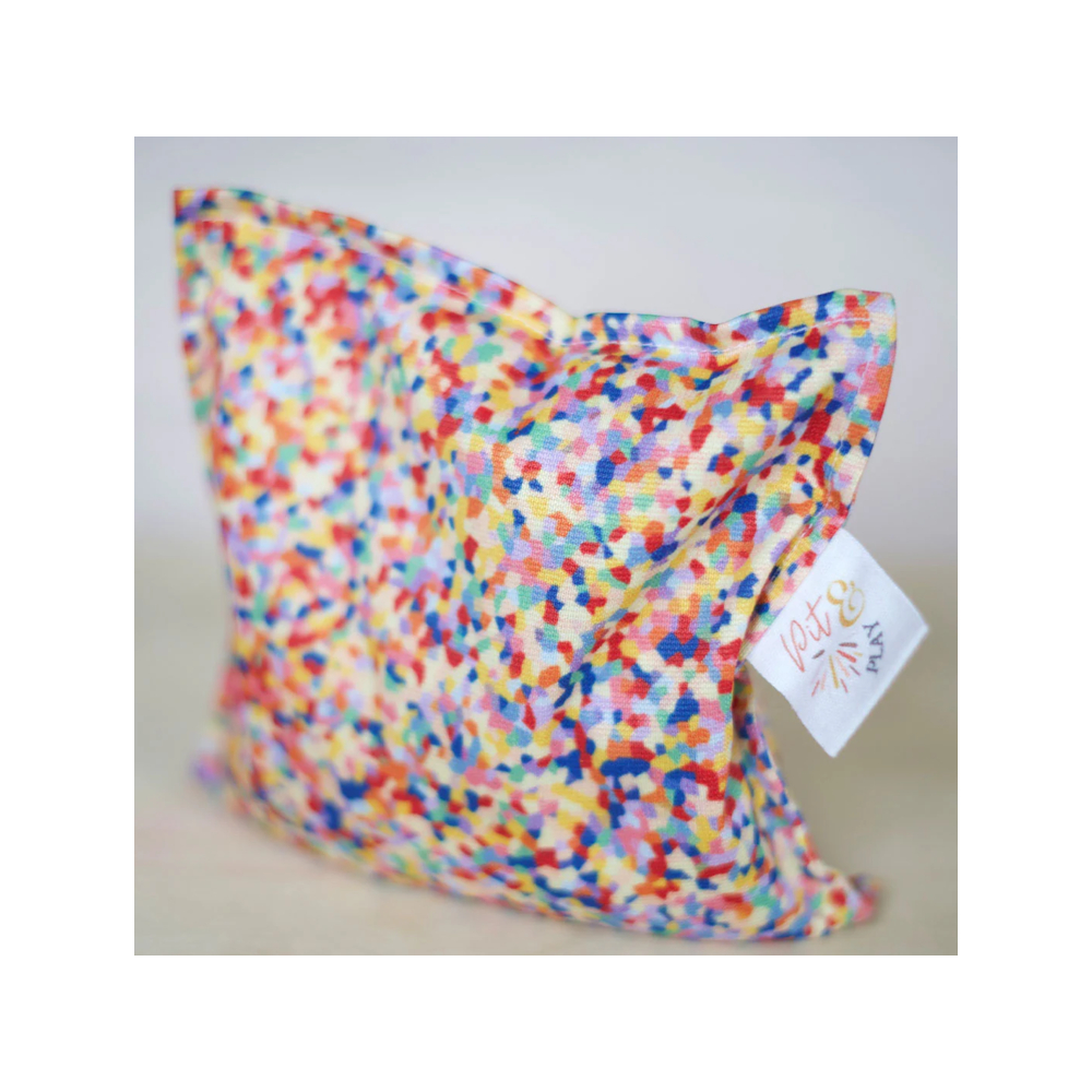 De bontgekleurde Super Confetti pittenzak van het Nederlandse merk Pit & Play nodigt kinderen uit om te voelen, gooien, balanceren en eindeloos te experimenteren. Dit open einde speelgoed stimuleert nieuwsgierigheid, fantasie en speels leren. Dankzij de verschillende texturen wordt ook de sensorische ontwikkeling op een natuurlijke manier geprikkeld.