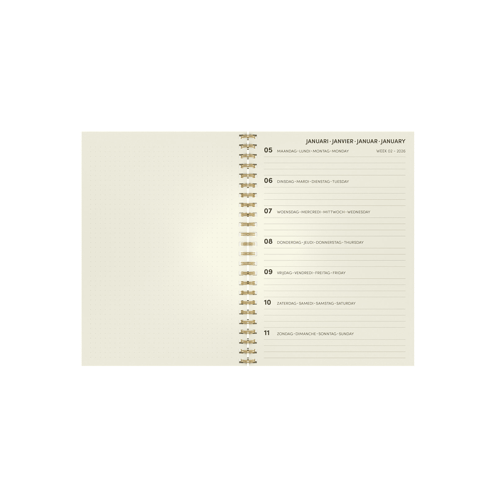 Deze planner combineert overzicht met een prachtig bloemenmotief.- A5-formaat – compact en makkelijk mee te nemen