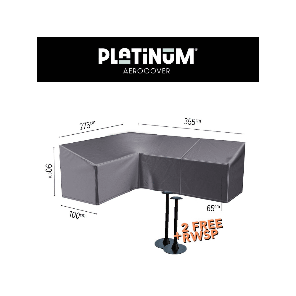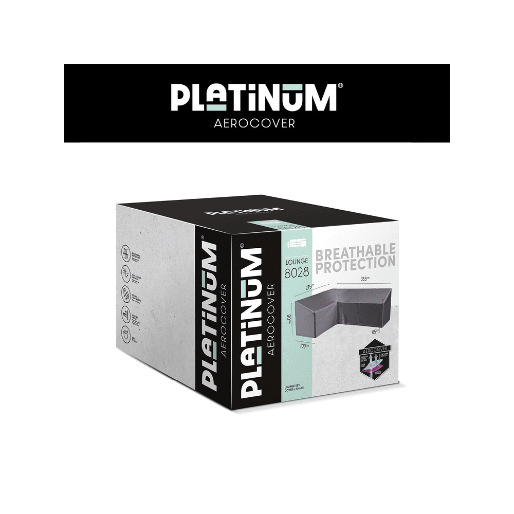 Bescherm je L-vormige loungeset met hoge rug tegen regen, vuil en zon met de Platinum Aerocover. Duurzaam, waterafstotend en ideaal voor langdurig buitengebruik.