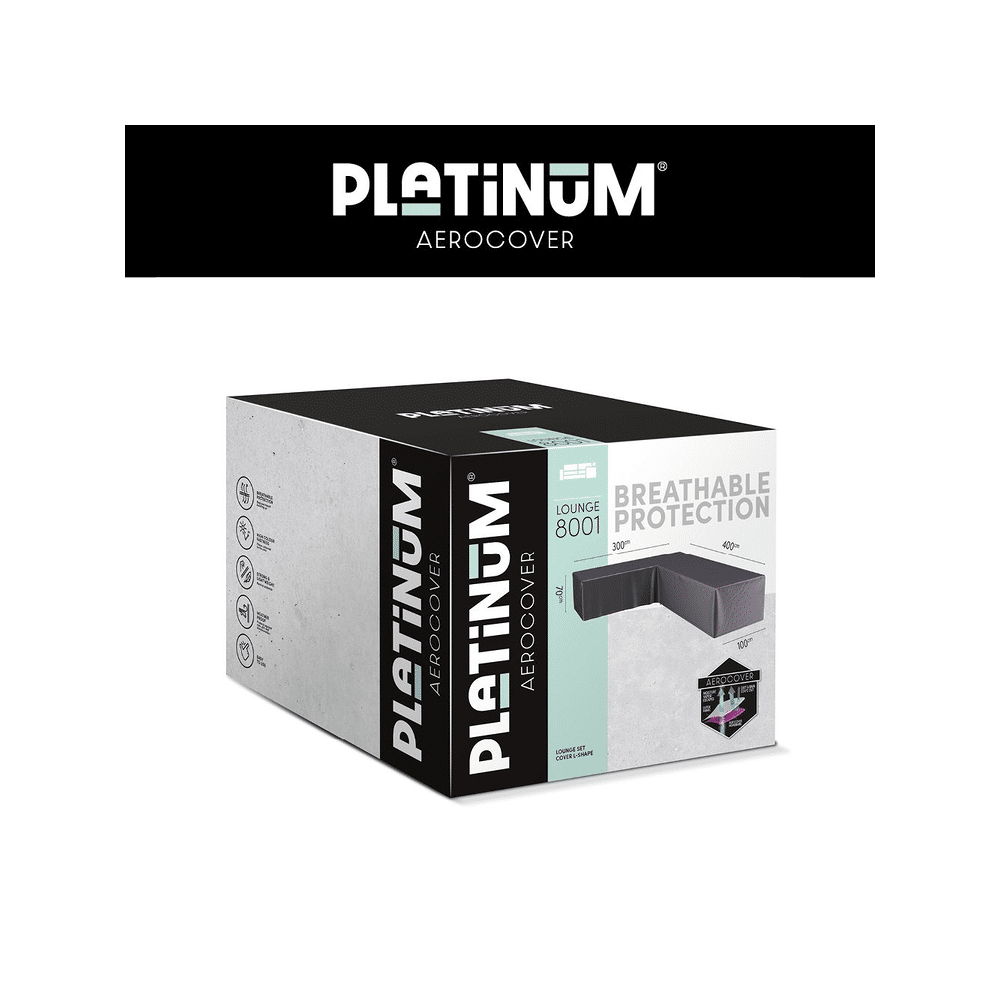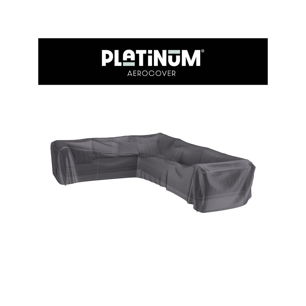 Bescherm je L-vormige loungeset met lage rug tegen regen, vuil en zon met de Platinum Aerocover. Duurzaam, waterafstotend en perfect voor langdurig buitengebruik.