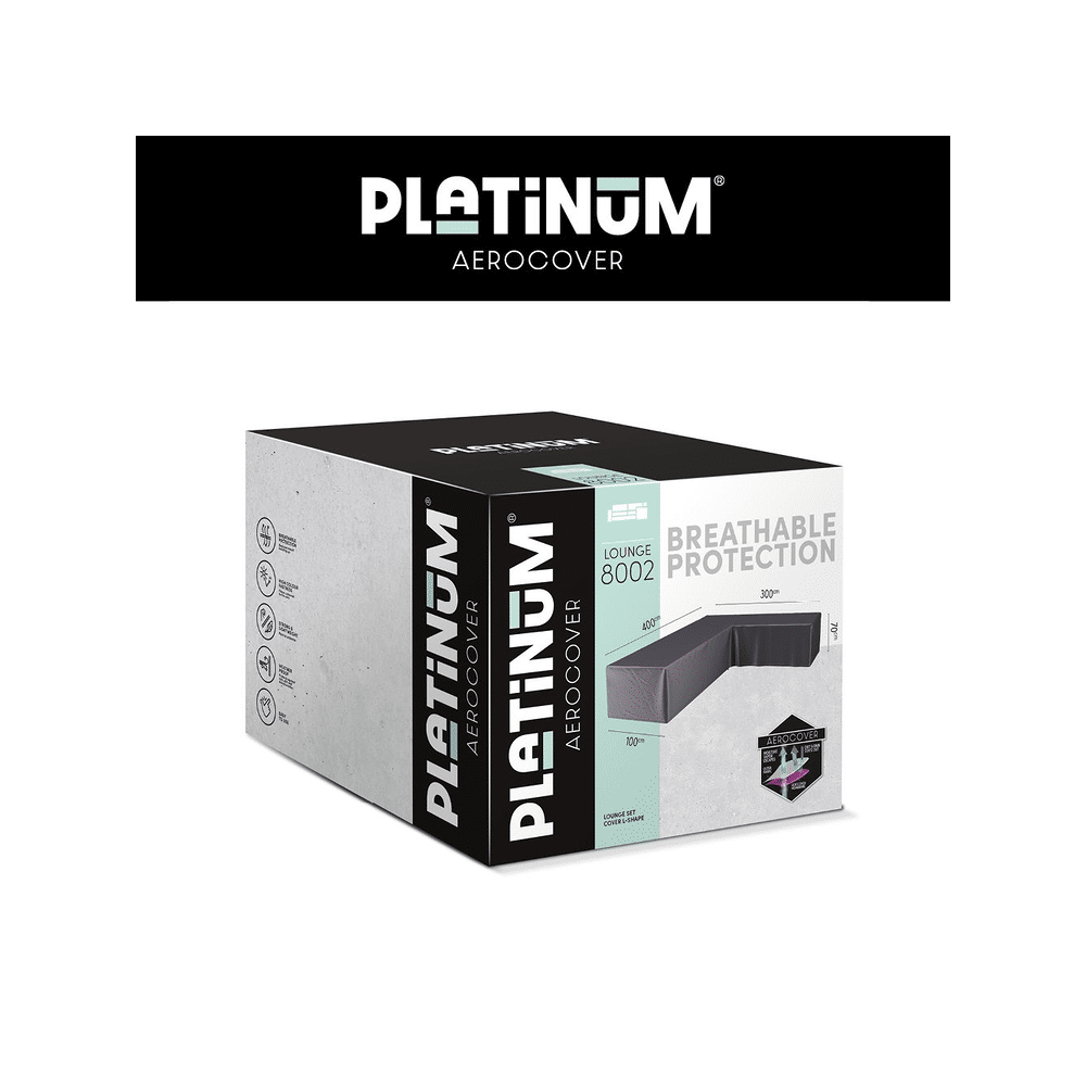 Bescherm je L-vormige loungeset met lage rug tegen regen, vuil en zon met de Platinum Aerocover. Duurzaam, waterafstotend en perfect voor langdurig buitengebruik.