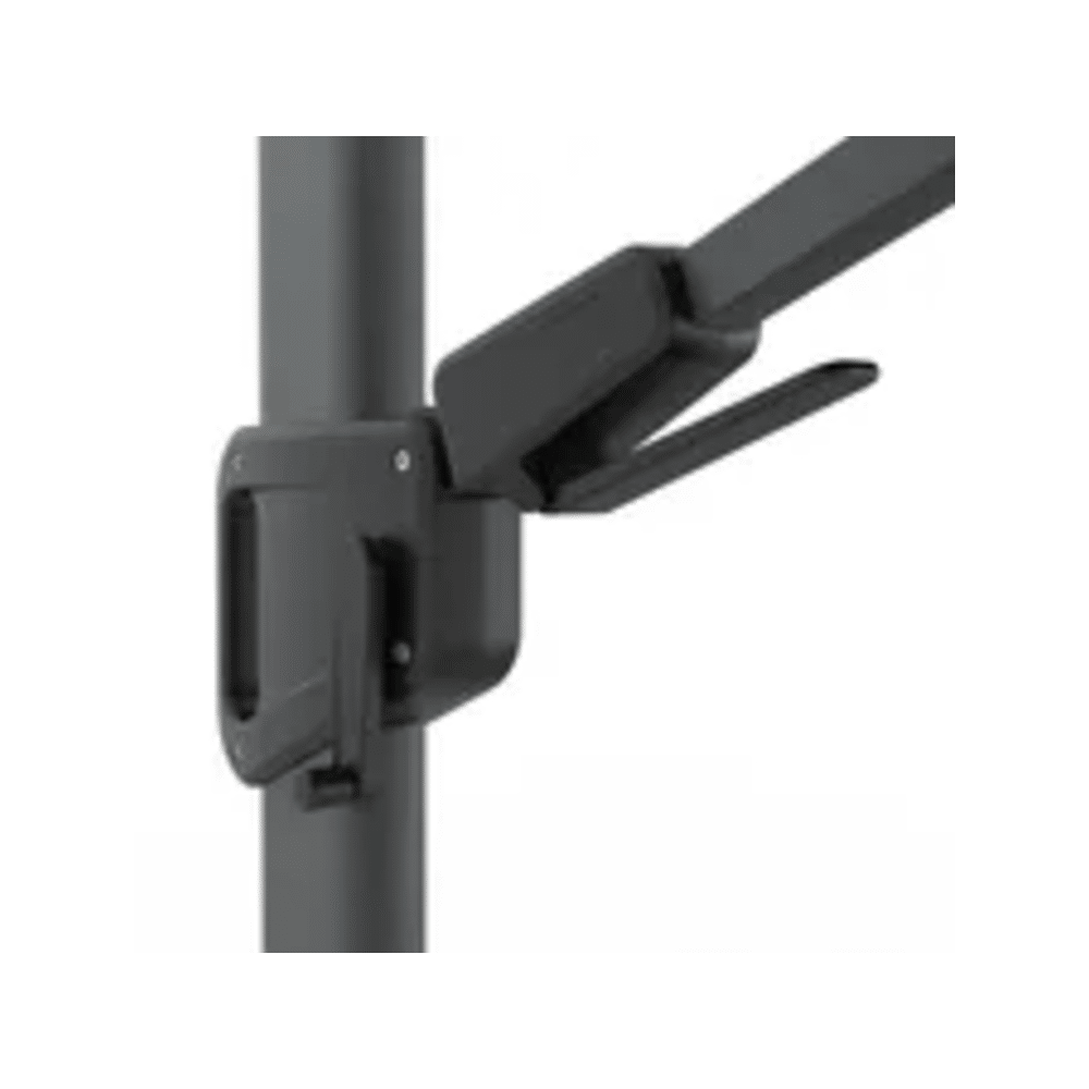 Deze parasol is volledig uitgevoerd in antraciet, wat zorgt voor een strakke en moderne uitstraling die bij iedere buitenruimte past.