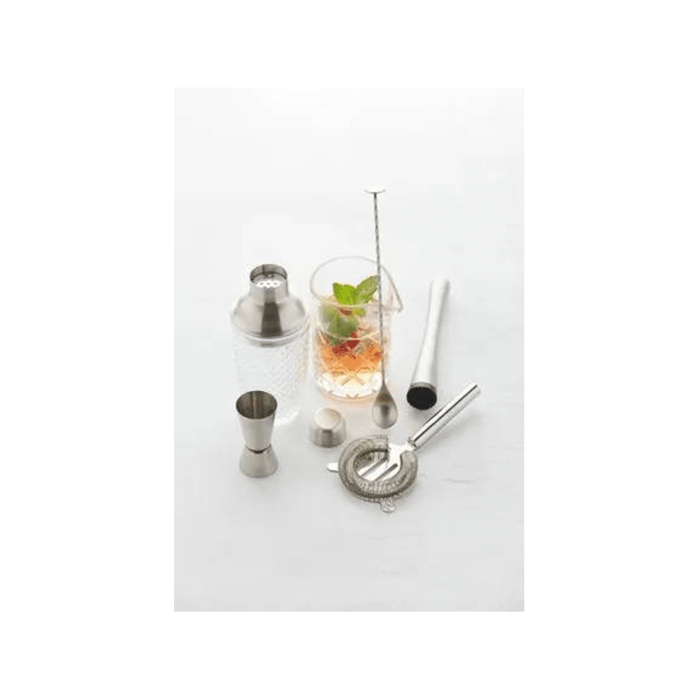 Shake, mix en serveer als een echte bartender met deze stijlvolle 6-delige cocktailset van Point-virgule! De combinatie van glas en roestvrij staal geeft jouw cocktails een professionele uitstraling, terwijl je alle tools die je nodig hebt binnen handbereik hebt. Of je nu klassieke mojito’s, verfrissende gin-tonics of creatieve signature drinks maakt, deze set helpt je om elk drankje perfect te bereiden. Dankzij het duurzame materiaal gaan de onderdelen lang mee en zijn ze makkelijk schoon te maken. Zet je vrienden in de watten en geef je cocktails nét dat extra vleugje flair en stijl met deze complete set!