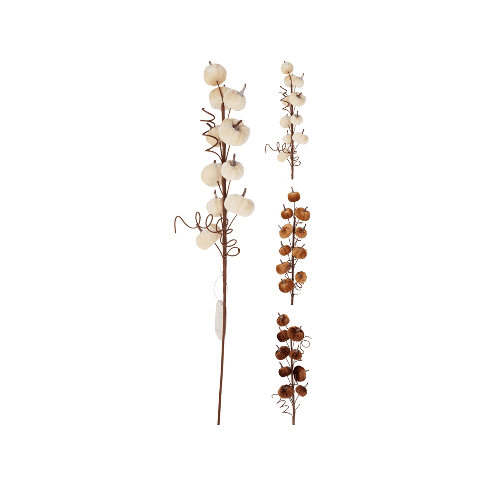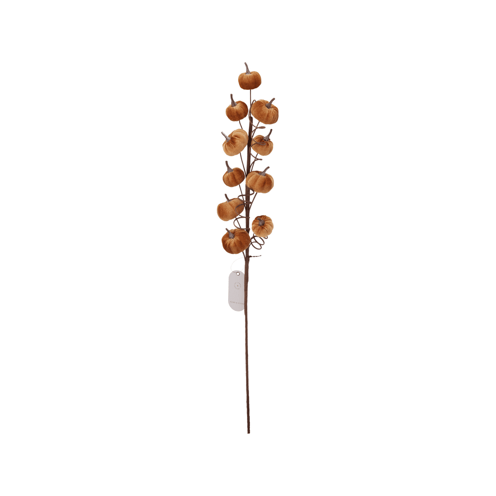 Deze tak met 10 pompoenen past perfect in een vaas, herfststukje of tafelsetting. De zachte stof en warme kleuren zorgen voor een stijlvolle, natuurlijke look.- Met 10 fluwelen pompoentjes per tak