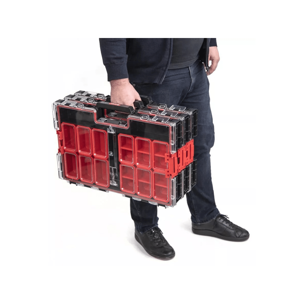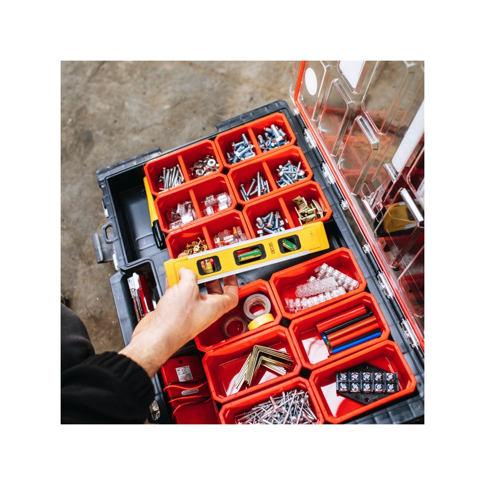 Compact, maar verrassend ruim. Deze Qbrick Organizer L van 531x379x77 mm houdt al je schroeven, bits en klein gereedschap netjes op hun plek.Wat maakt deze organizer zo handig?
