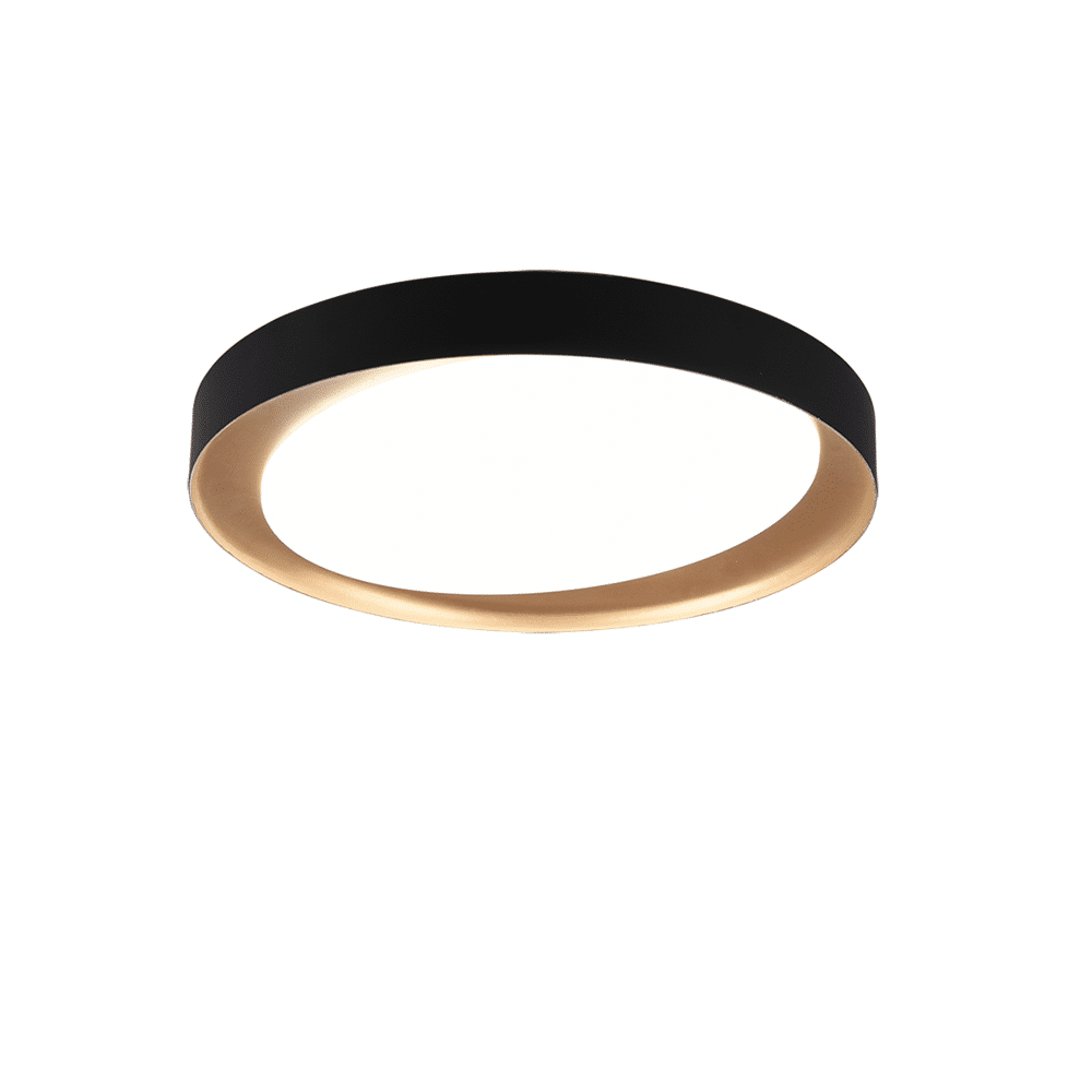De ZETA plafondlamp van Trio combineert soberheid en harmonie met een strak modern design. Het licht treedt dankzij de minimalistische vormgeving op de voorgrond en creëert een aangename, sfeervolle ambiance in elke ruimte. De gouden afwerking aan de binnenkant van de anders zwarte lamp geeft een subtiele schittering en warm, zacht licht.