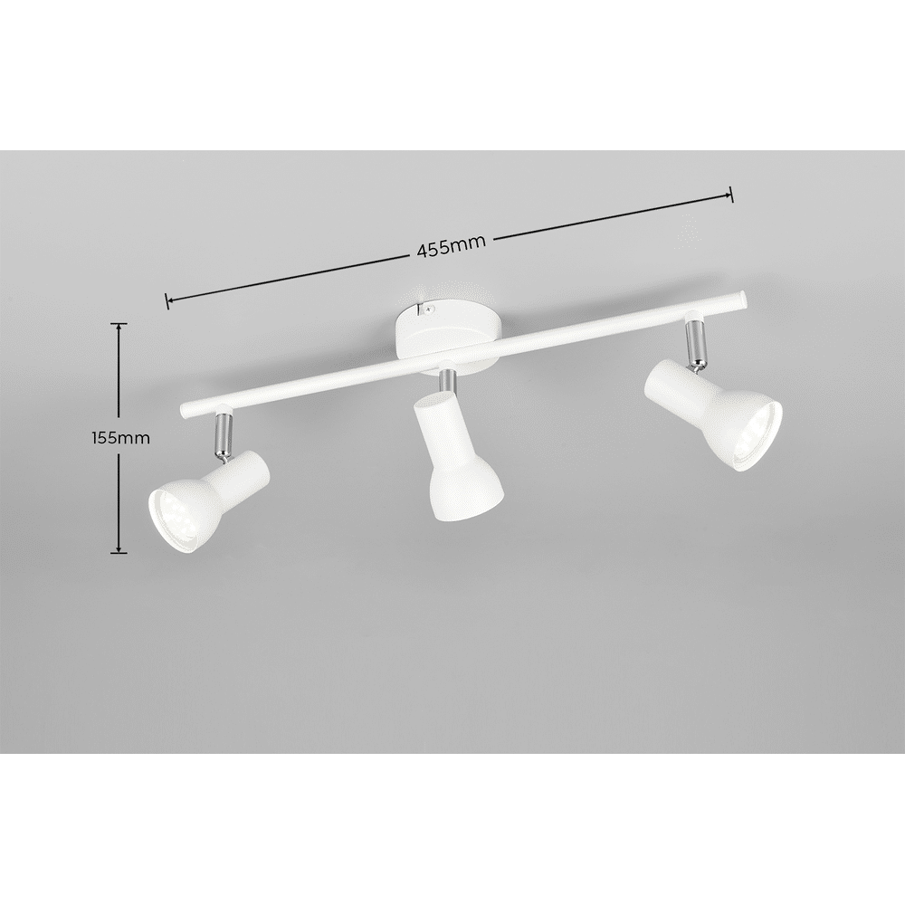 De Trio CANTAR drielichts lamp brengt elegante functionaliteit in elke ruimte. Het matte witte design is licht en subtiel, waardoor het perfect past in elk interieur. De drie beweegbare spots laten je het licht richten waar jij wilt, ideaal voor de keuken, kleine kamers of als gezellige extra verlichting. Werkt met GU10 LED-lichtbronnen (excl. 5W) voor energiezuinig en duurzaam gebruik.