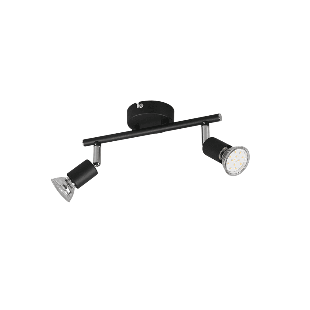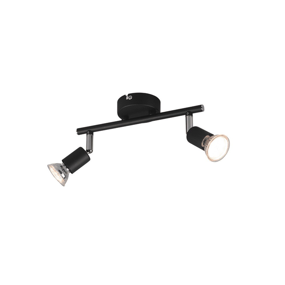 De Trio PARIS tweelichts spot brengt functioneel en elegant licht in elke ruimte. Met de twee draaibare spots kun je het licht precies richten voor gerichte verlichting of een uitnodigende sfeer. Het matzwarte design is subtiel en veelzijdig, waardoor de lamp naadloos in elk interieur past. Werkt met GU10 LED-lichtbronnen (excl. 35W) voor energiezuinig en duurzaam gebruik.