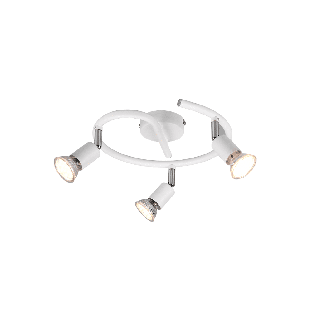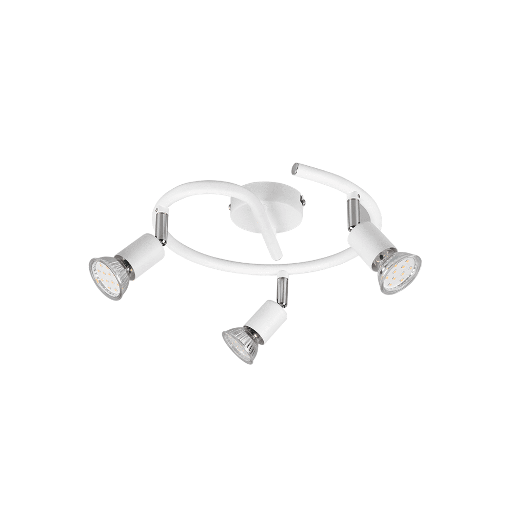 De Trio PARIS drielichts spot combineert strak design met functionele verlichting. Met drie draaibare spots kun je het licht precies richten voor gerichte verlichting of sfeervolle accenten. Het matwitte design geeft een modern contrast en past moeiteloos in diverse interieurstijlen. Werkt met GU10 LED-lichtbronnen (excl. 35W) voor energiezuinig en duurzaam gebruik.