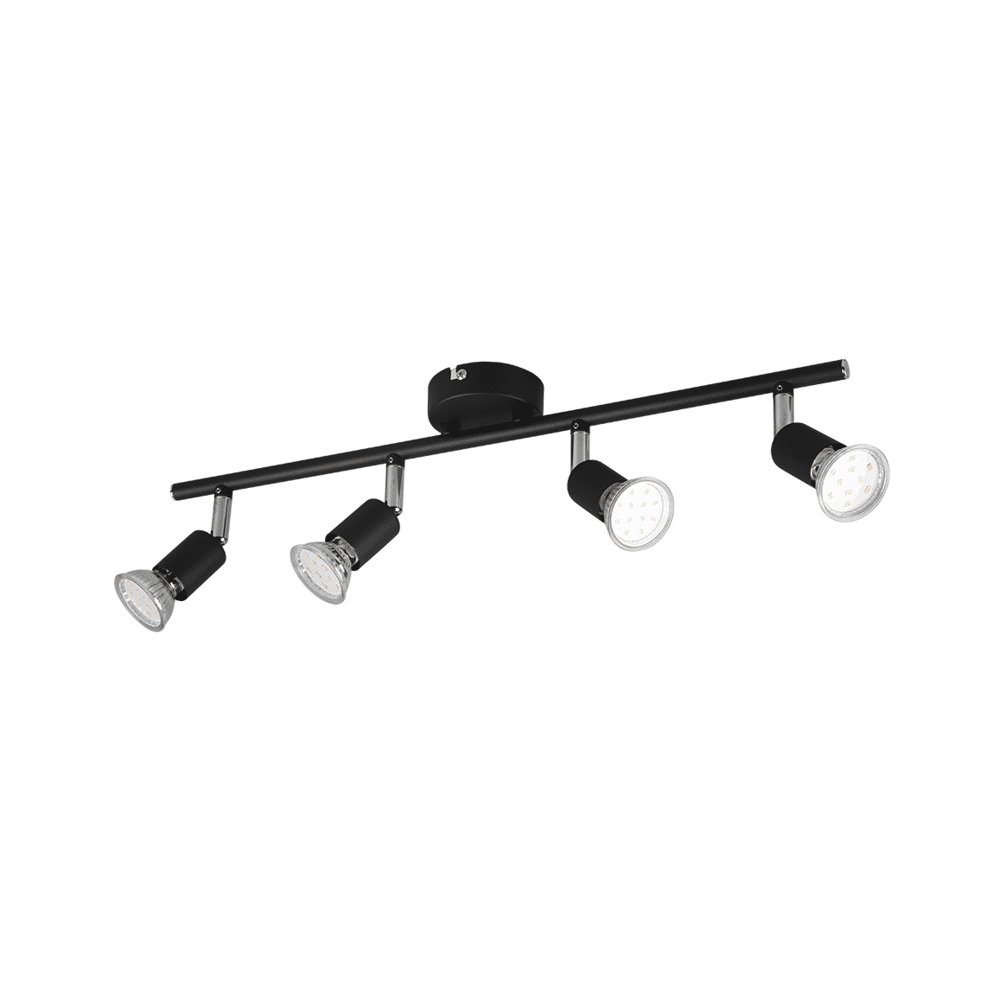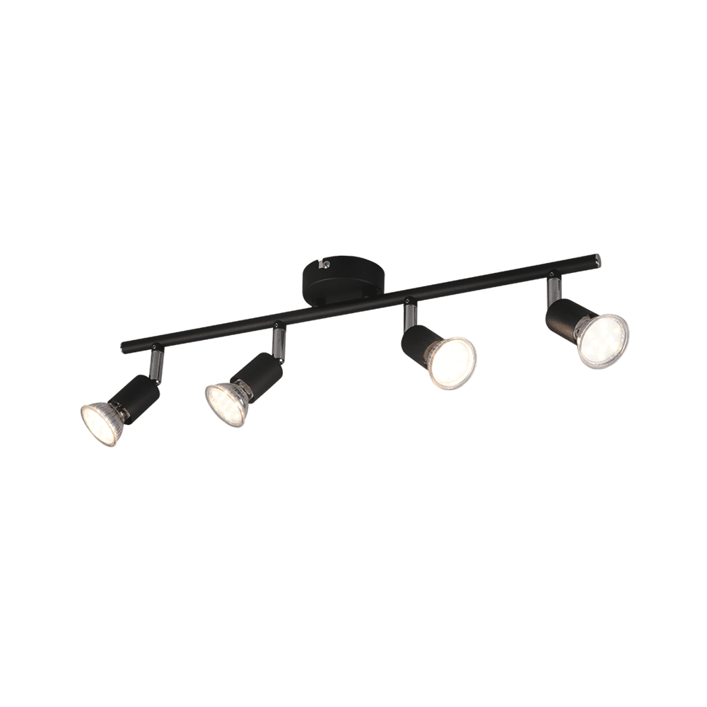 De Trio PARIS vierlichts spot brengt veelzijdige verlichting met stijl in elke ruimte. Dankzij de vier draaibare spots kun je de lichtstraal flexibel richten, zelfs na installatie. Het heldere, tijdloze ontwerp in matzwart maakt de lamp perfect voor diverse interieurstijlen. De lamp heeft een lengte van 50 cm en werkt met GU10 LED-lichtbronnen (excl. 35W) voor energiezuinig en duurzaam gebruik.